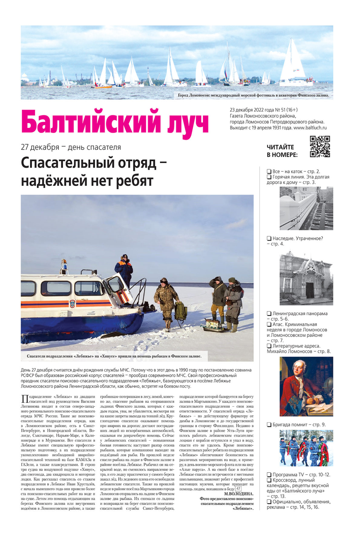 Главная Новости Новый номер газеты «Балтийский луч» (№51 от 23.12.2022 года) — уже в продаже и в ваших почтовых ящиках
