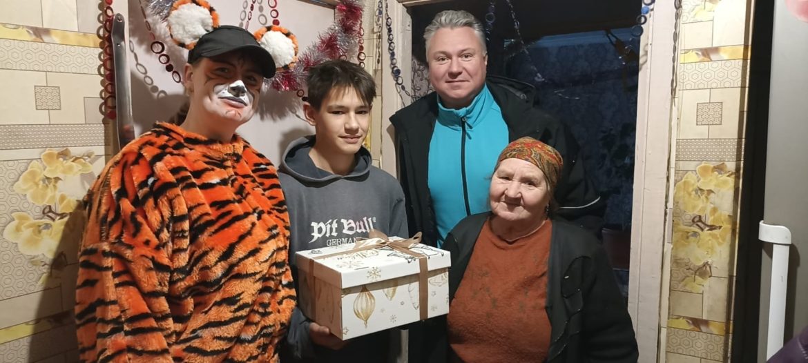 Поздравления с новым годом также получила семья Губайдуллиных. Андрей и Саид получили подарки от имени заместителя главы администрации Ломоносовского района Алексея Писцова.