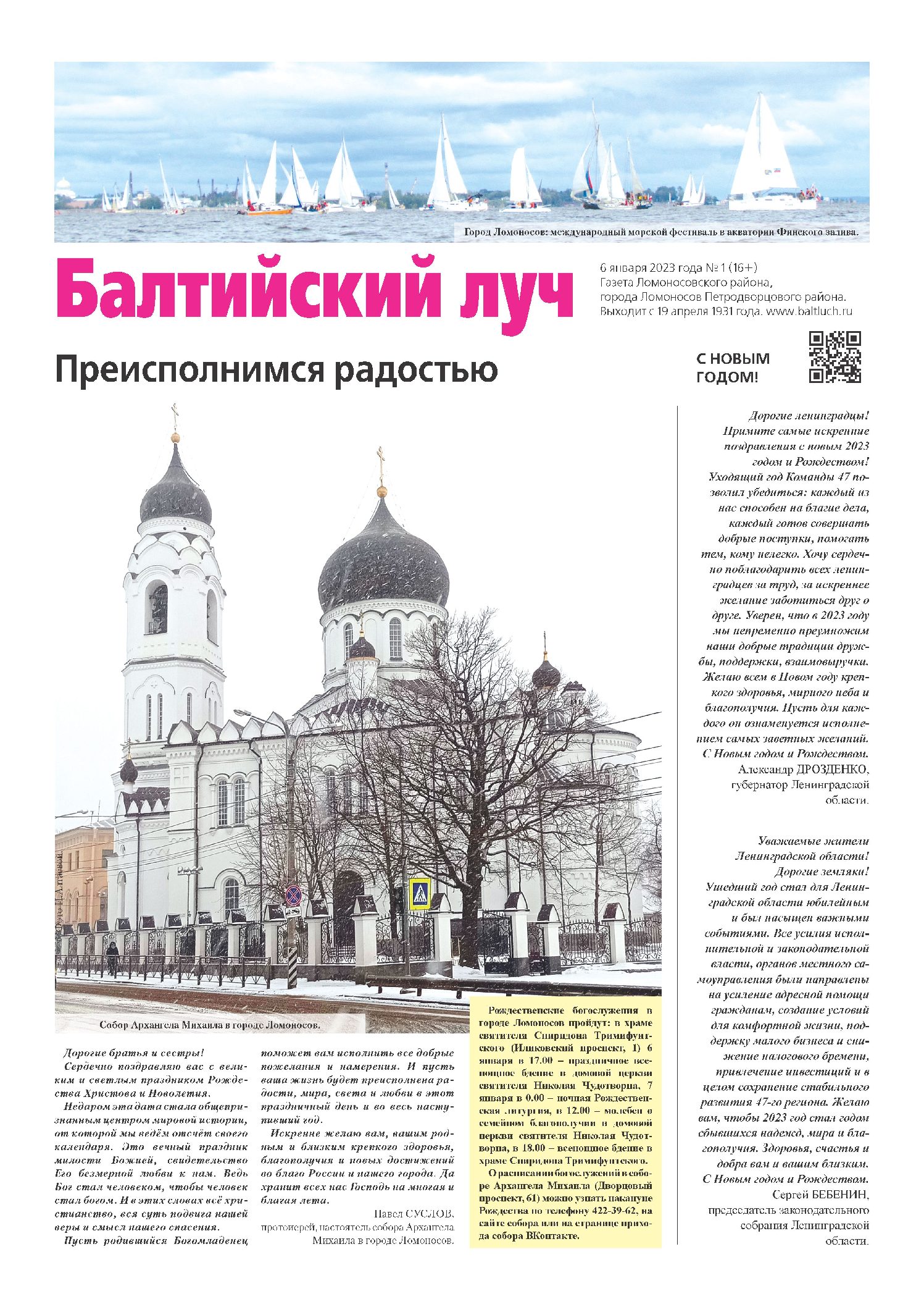 Газета «Балтийский луч» зарегистрирована в Управлении Федеральной службы по надзору в сфере связи, информационных технологий и массовых коммуникаций по Санкт-Петербургу и Ленинградской области. Свидетельство о регистрации средства массовой информации ПИ № ТУ 78-00616 от 21 мая 2010 года.