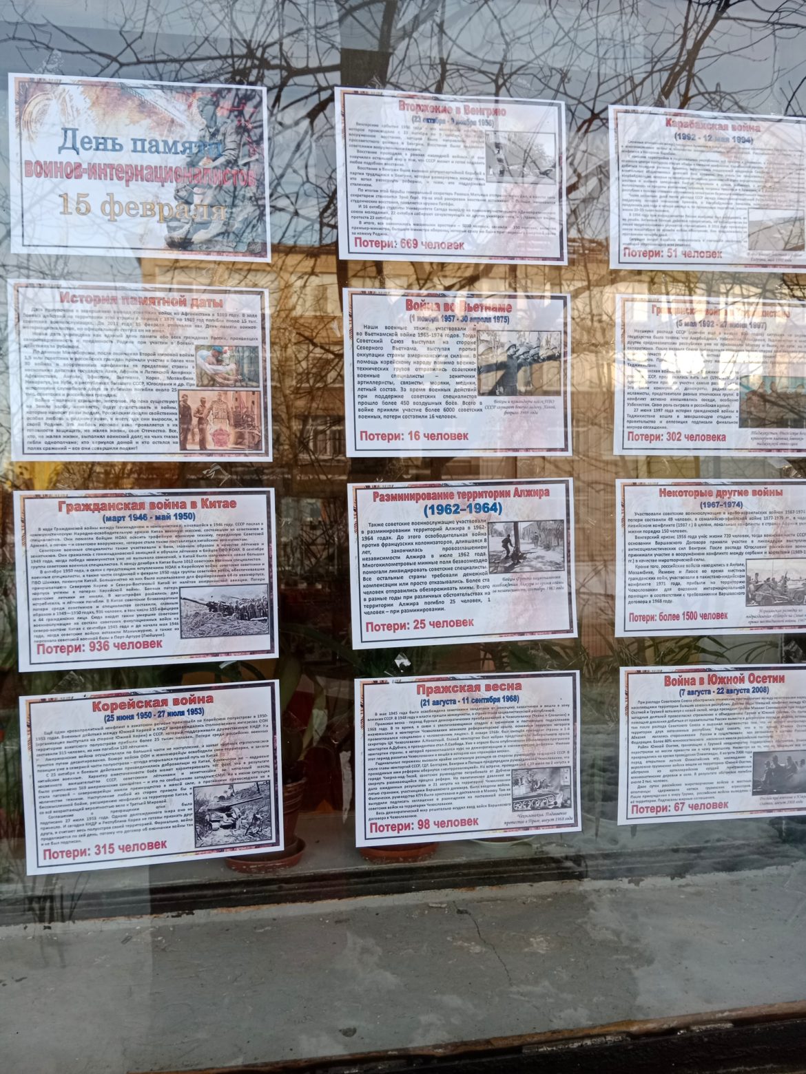 Заведующая отделом обслуживания Вера Морозова подготовила также тематическую выставку в зале абонемента библиотеки, где представлена художественная литература, посвящённая афганской войне, локальным конфликтам в Чеченской республике, Карабахе и других точках. Авторы книг — участники этих событий. А ещё писатели Николай Прокудин и Сергей Галицкий — частые гости в районной библиотеке. Их рассказы-воспоминания из своего боевого и жизненного опыта всегда с большим интересом воспринимаются читательской аудиторией.