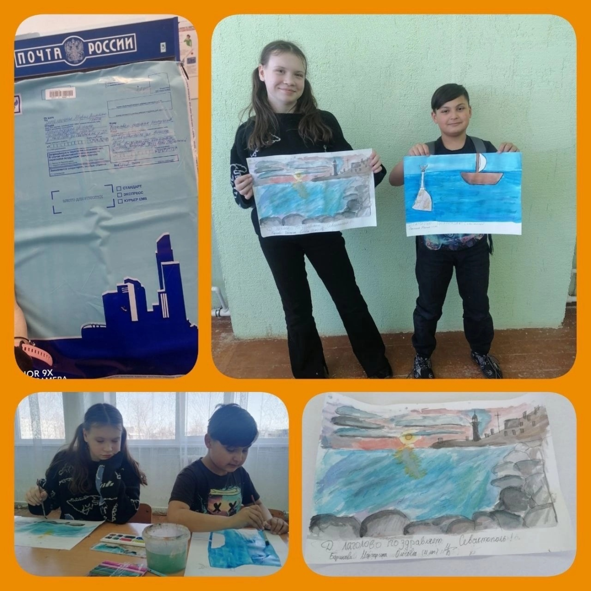 * Важно, что ребята под руководством педагога дополнительного образования Центра детского творчества Бессолнечной Марии Валентиновны не просто изображали Севастополь, но и погрузились в изучение его истории, истории Города-Героя, города воинской славы, очень значимого для России. Они нарисовали красивые пейзажи, достопримечательности города и отправили по почте свои работы!