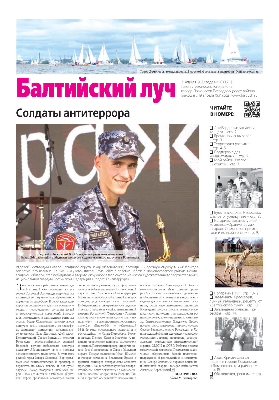 Главная #Мойрайон Новый номер газеты «Балтийский луч» (№16 от 21.04.2023 года) — уже в продаже и в ваших почтовых ящиках.