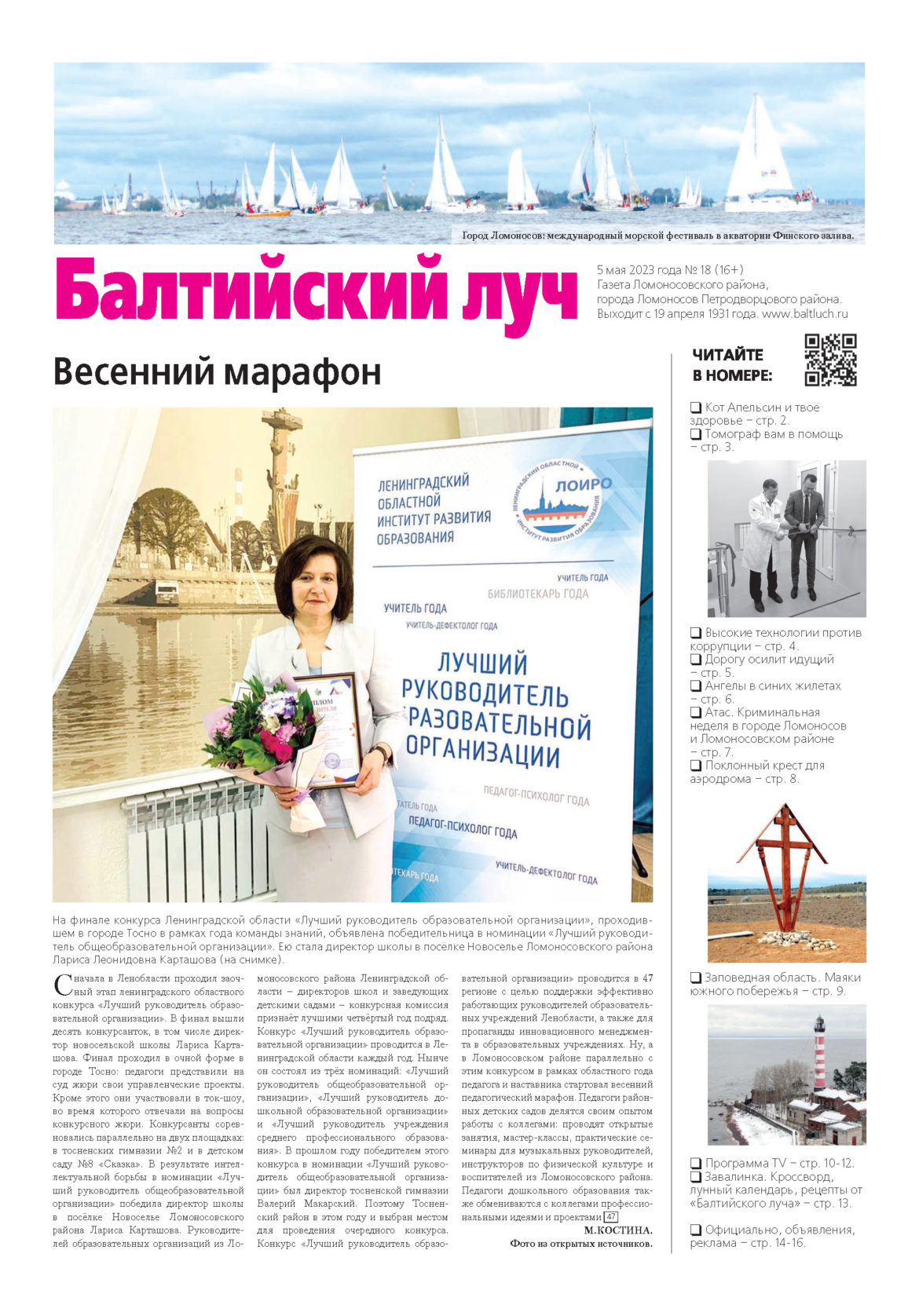 Главная Новости Новый номер газеты «Балтийский луч» (№18 от 05.05.2023 года) — уже в продаже и в ваших почтовых ящиках.