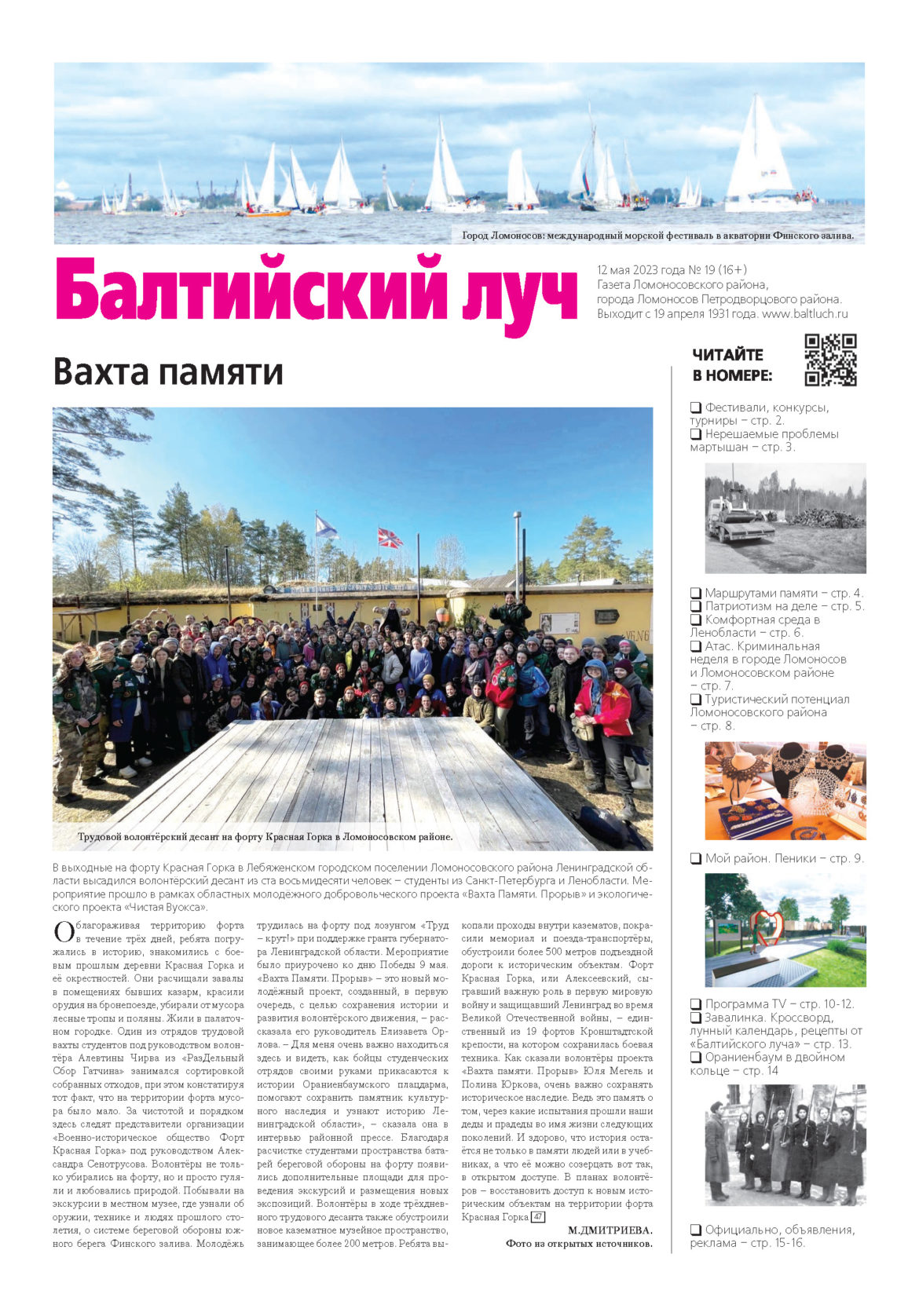 Главная #Мойрайон Новый номер газеты «Балтийский луч» (№19 от 12.05.2023 года) — уже в продаже и в ваших почтовых ящиках.