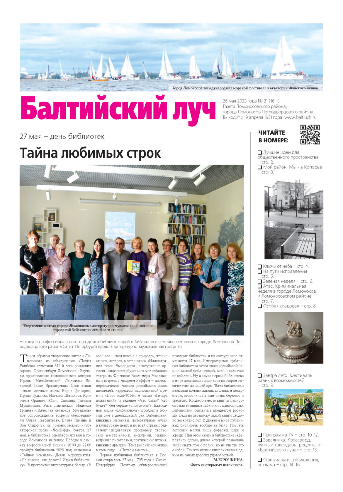 Главная Новости Новый номер газеты «Балтийский луч» (№21 от 26.05.2023 года) — уже в продаже и в ваших почтовых ящиках.