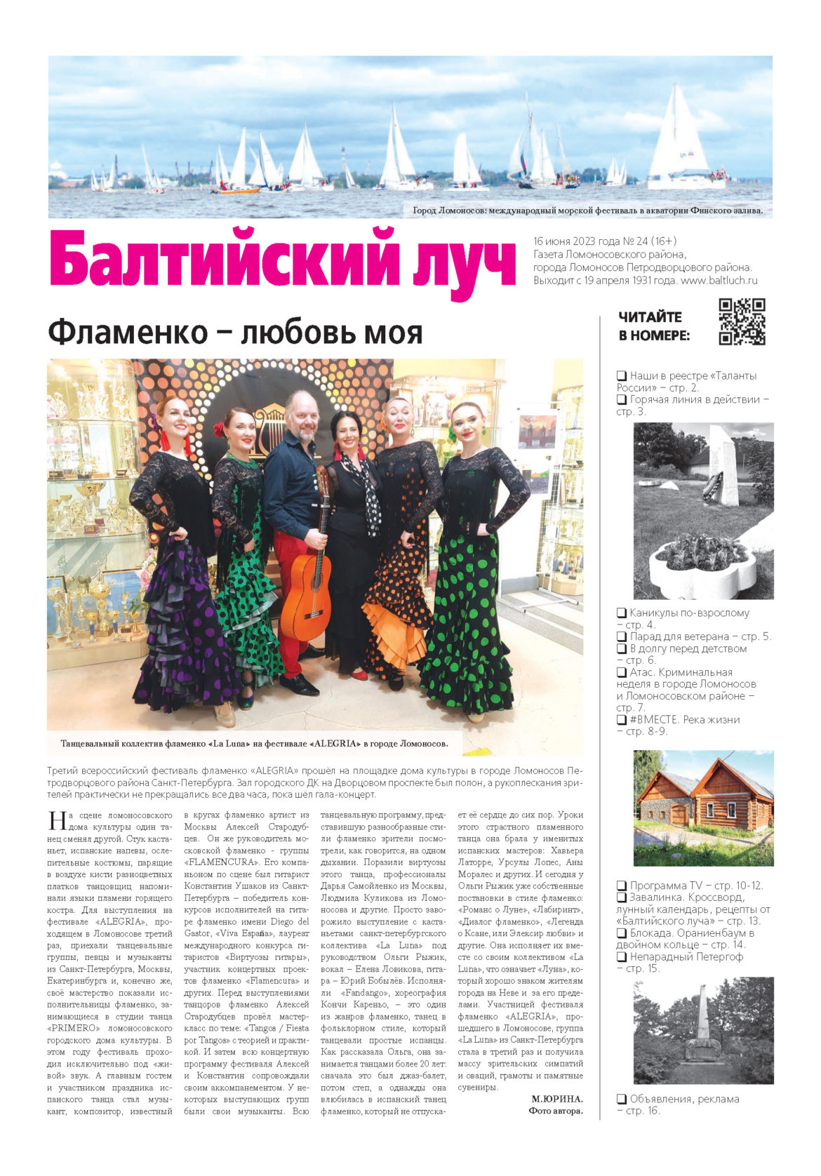 Новый номер газеты «Балтийский луч» (№24 от 16.06.2023 года) — уже в продаже и в ваших почтовых ящиках.
