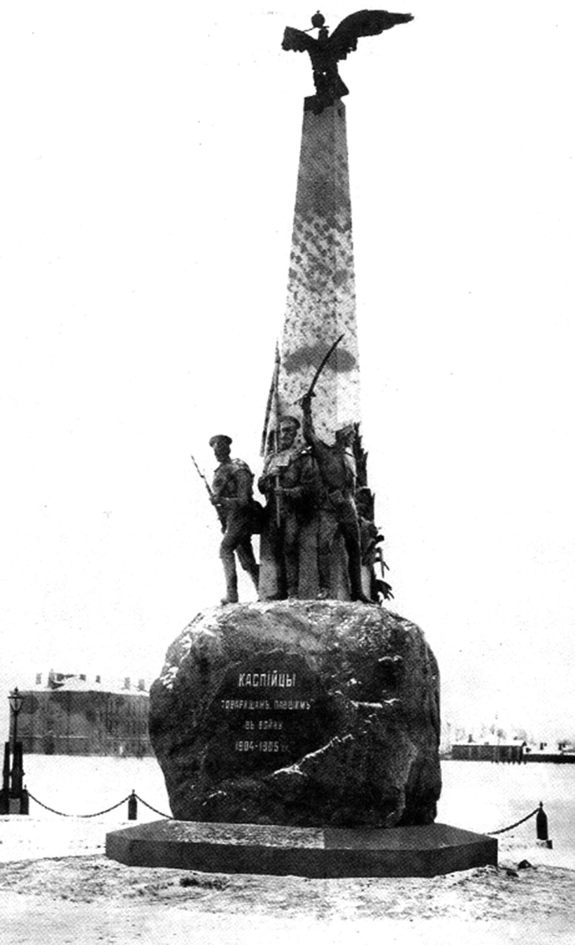 Неподалеку от памятника каспийцам есть ещё один, небольшой, посвящённый одному из первых российских авиаторов Михаилу Георгиевичу Балабушке. И вот у него-то довольно странная судьба. Памятник поставили в 1913 году, через некоторое время после гибели летчика. А вот после революции его снесли и закопали. Что плохого сделал советской власти авиатор, который и до революции-то не дожил, тем более не служил в Белой армии – так и останется тайной.