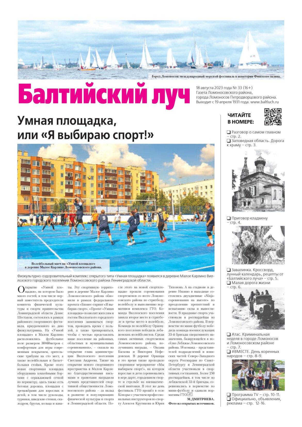 Главная Новости Новый номер газеты «Балтийский луч» (№33 от 18.08.2023 года) — уже в продаже и в ваших почтовых ящиках