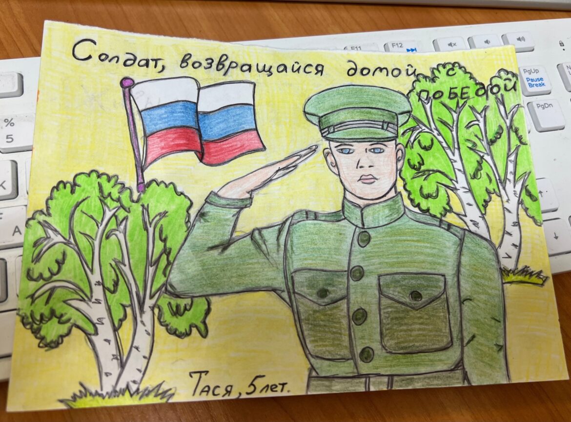 Дорогой солдат! Мы с тобой не знакомы. Надеюсь, ты будешь рад моему письму. Мы следим за тем, что происходит на Украине. Мы знаем, что нет ничего страшнее войны. Хочу сказать тебе большое спасибо за то, что ты защищаешь нашу Родину, стоишь на страже мира. Конечно, я тебе желаю здоровья, верных товарищей и удачи. Я понимаю, как там сложно – у вас, наверное, вечная бомбежка… Но ты не сдаешься, и каждый день продвигаешься дальше, чтобы одержать победу!