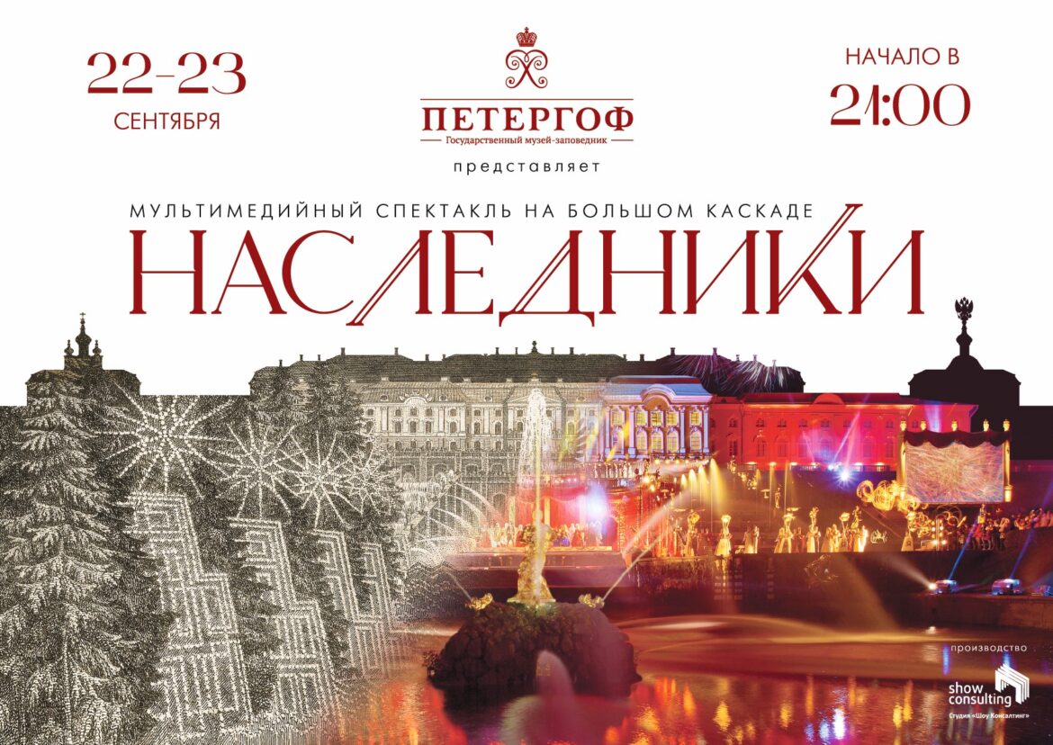 22 и 23 сентября 2023 года Государственный музей-заповедник «Петергоф» представит мультимедийный спектакль «НАСЛЕДНИКИ». Каждый год тысячи петербуржцев и гостей города становятся зрителями масштабного представления на Большом каскаде в Нижнем парке. «НАСЛЕДНИКИ» также будут эксклюзивно транслироваться в сообществе музея-заповедника «Петергоф» ВКонтакте: https://vk.com/peterhof_museum 22 сентября.