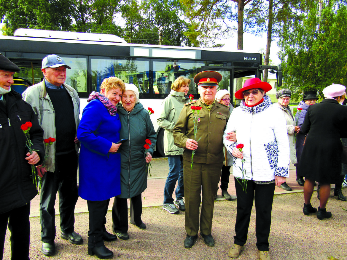 Фото: Людмила Петровна Круус с ветеранами Ломоносова во время автопробега, сентябрь, 2021 год