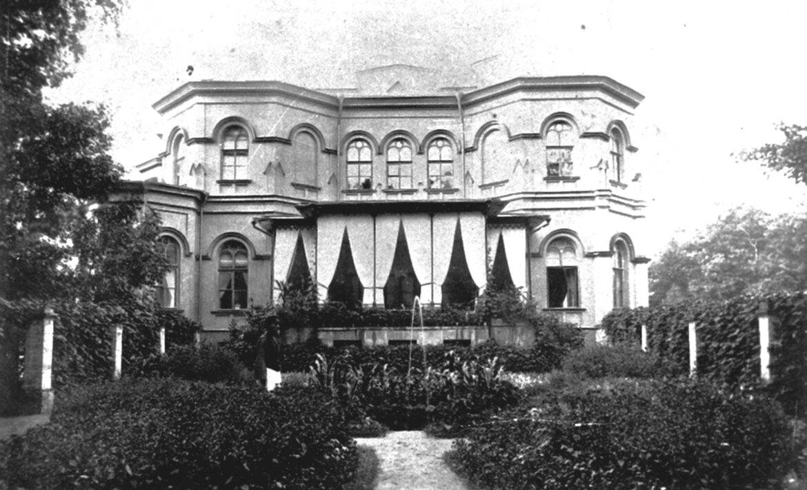 Фото сверху: Дворец в Гостилицах, вид с севера. Терраса, выходящая в Собственный садик. Фото 1900-х годов.