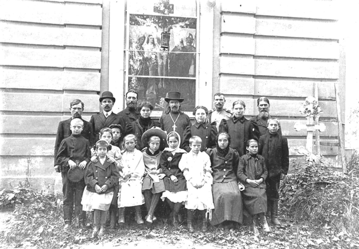 Фото сверху: На фото 1910 года священник Николай Молчанов с прихожанами возле церкви в Гостилицах.