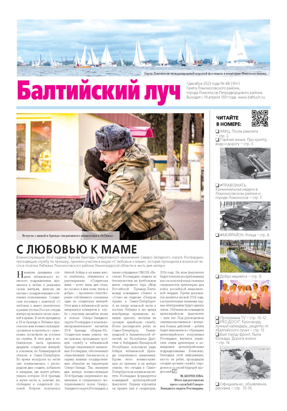 Главная Новости Новый номер газеты «Балтийский луч» (№48 от 01.12.2023 года) — уже в продаже и в ваших почтовых ящиках