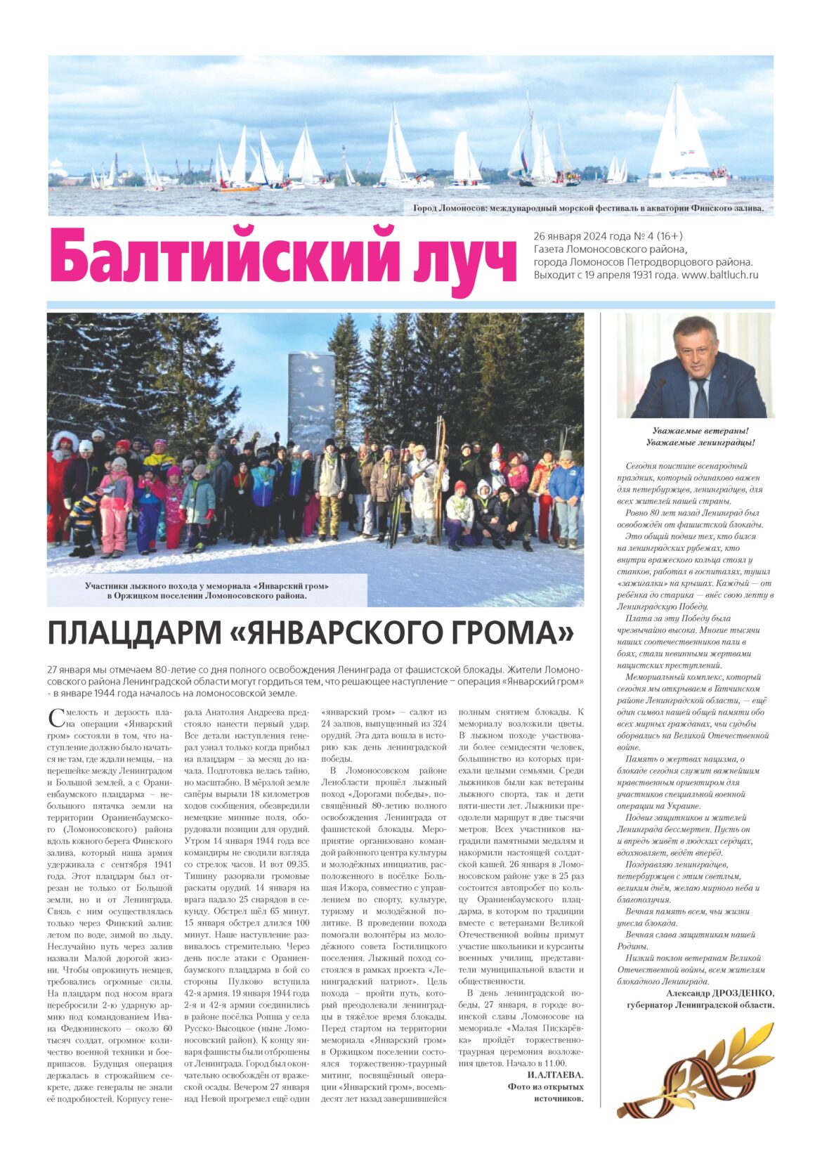 Главная #Мойрайон Новый номер газеты «Балтийский луч» (№4 от 26.01.2024 года) — уже в продаже и в ваших почтовых ящиках