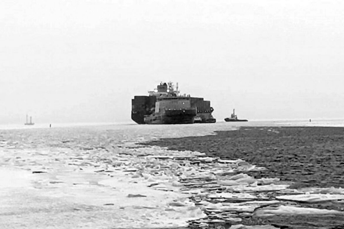 Транспортная полиция устанавливает обстоятельства ночного происшествия в порту Бронка в городе Ломоносов, где на мель кормой сел контейнеровоз.