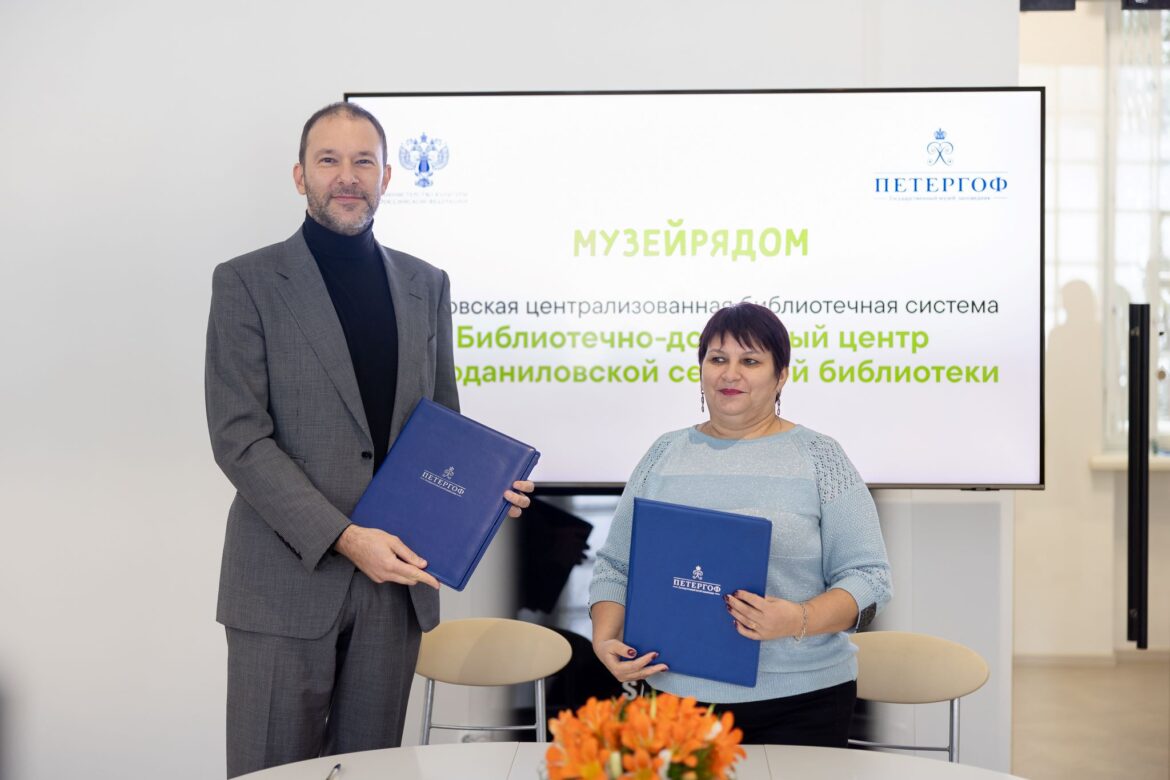 14 февраля 2024, в Международный день книгодарения, в ГМЗ «Петергоф» состоялась церемония передачи книг для будущего библиотечно-досугового центра в селе Новоданиловка (Запорожская область) и подписание соглашения о сотрудничестве между музеем-заповедником и Акимовской централизованной библиотечной системой в рамках проекта «Музей рядом» под эгидой Министерства культуры Российской Федерации.