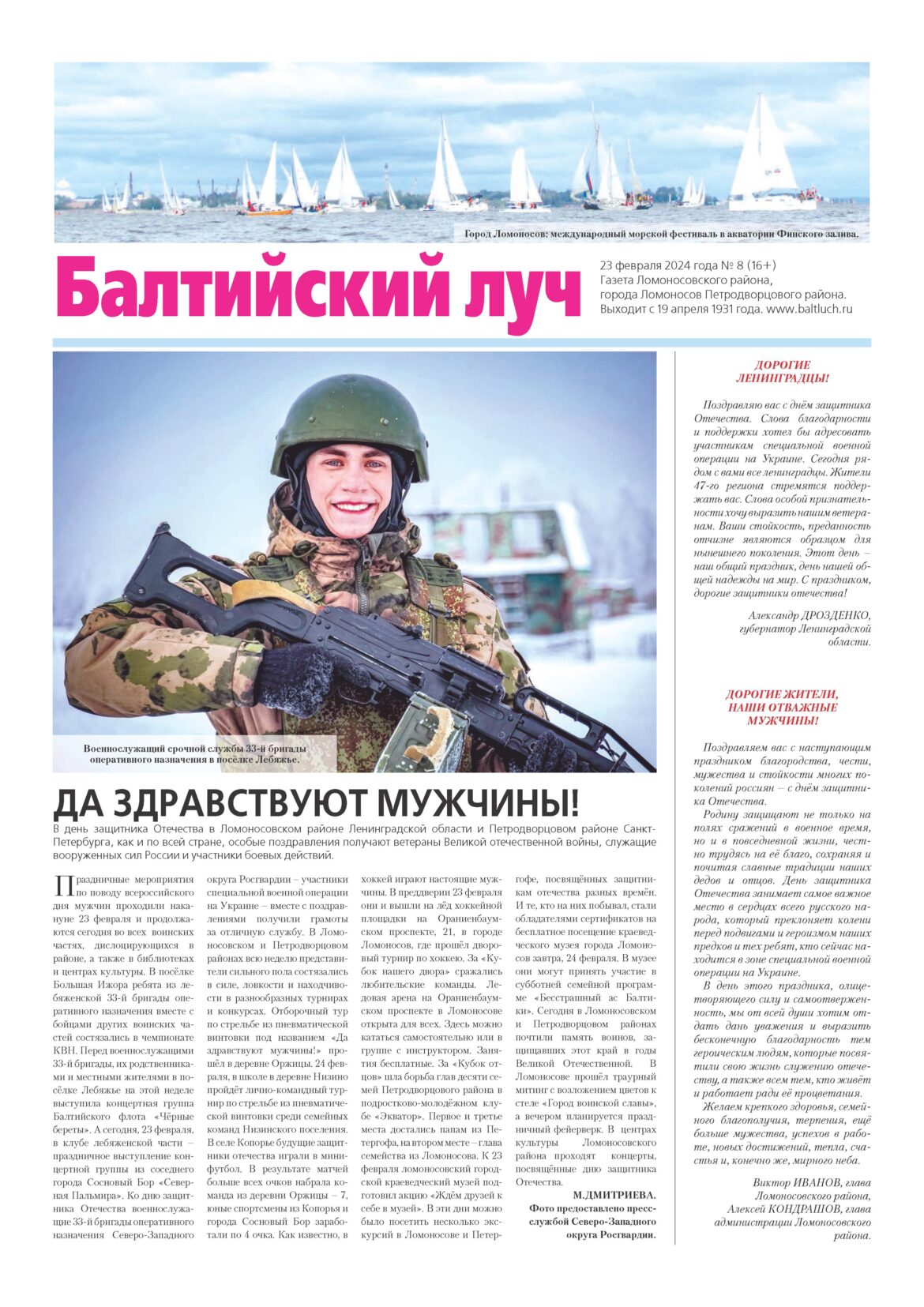 Главная #Мойрайон Новый номер газеты «Балтийский луч» (№7 от 16.02.2024 года) — уже в продаже и в ваших почтовых ящиках