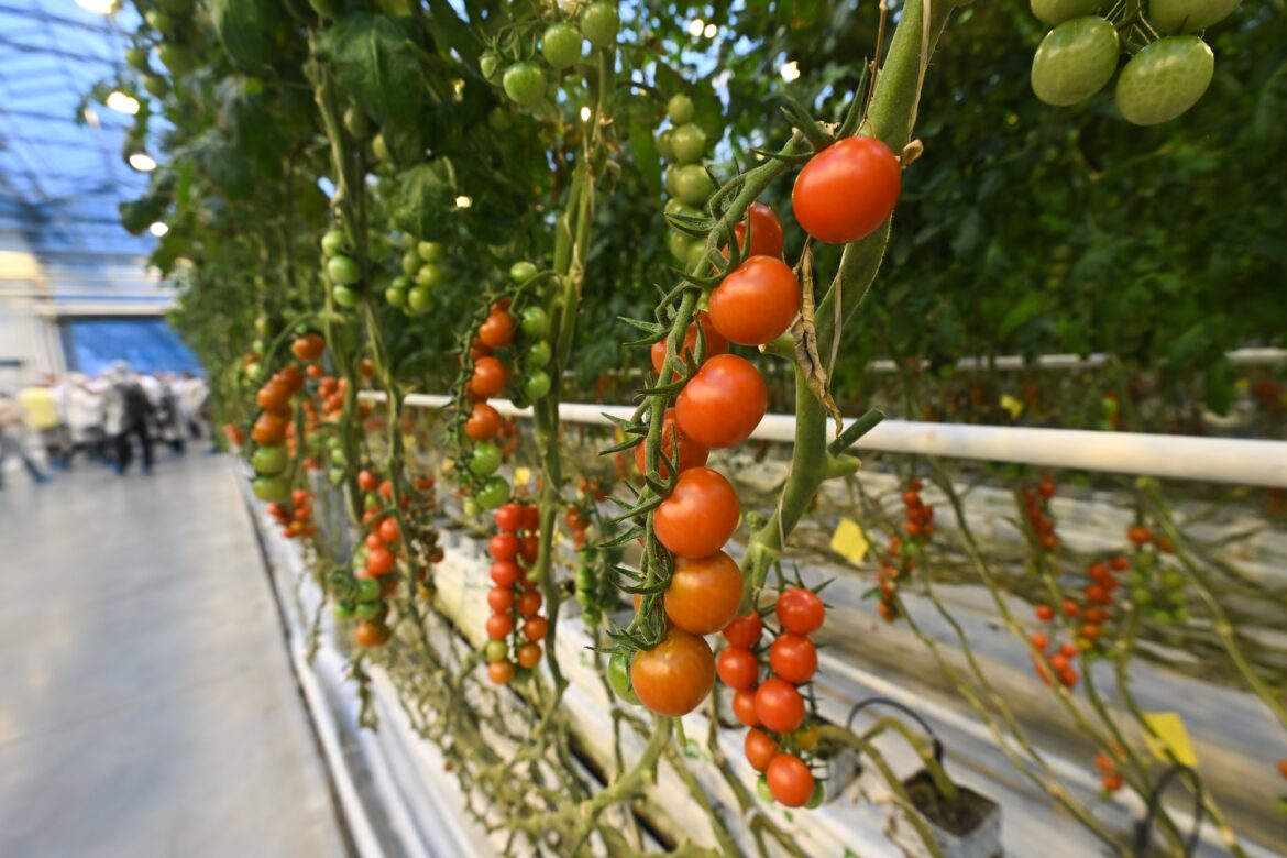 Внутри – идеальная чистота и свежий, насыщенный помидорным ароматом воздух. С самого раннего утра здесь кипит работа. Густо пахнет зелёной ботвой, огромные ветви тянутся до потолка. Высота таких «деревьев» доходит до 14 метров. К свету тянутся увешанные гроздьями стебли томатов. По ровным рядам ходят работники в спецодежде: собирают дозревшие плоды и следят за здоровьем растений. Тихо жужжат шмели, переезжают с места на место погрузчики с ящиками помидоров, работают упаковочные конвейеры – так выглядит современное производство томатов закрытого грунта.