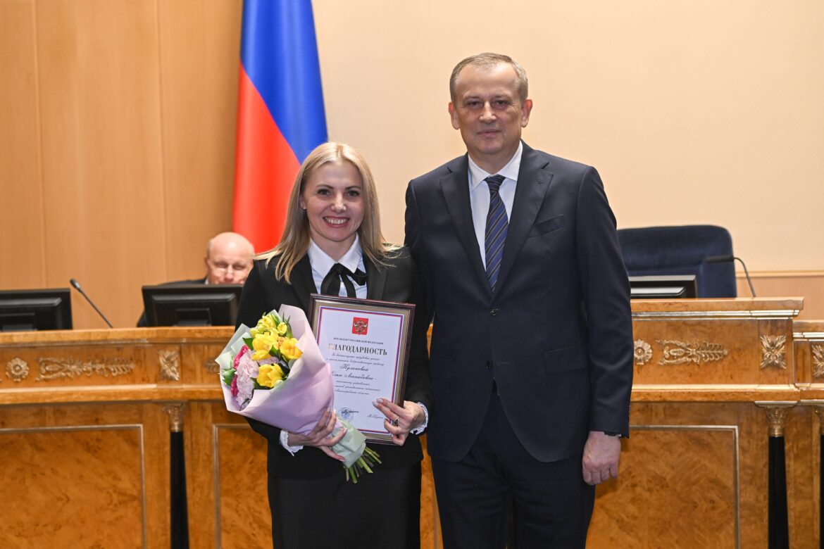 Огромная роль, особенно в Год семьи, отведена работникам Управления записи актов гражданского состояния Ленинградской области. На церемонии награждения была отмечена Ольга Куликова, начальник областного ЗАГСа. За достигнутые трудовые успехи и многолетнюю добросовестную работу Ольга Леонидовна награждена Благодарностью Президента России.