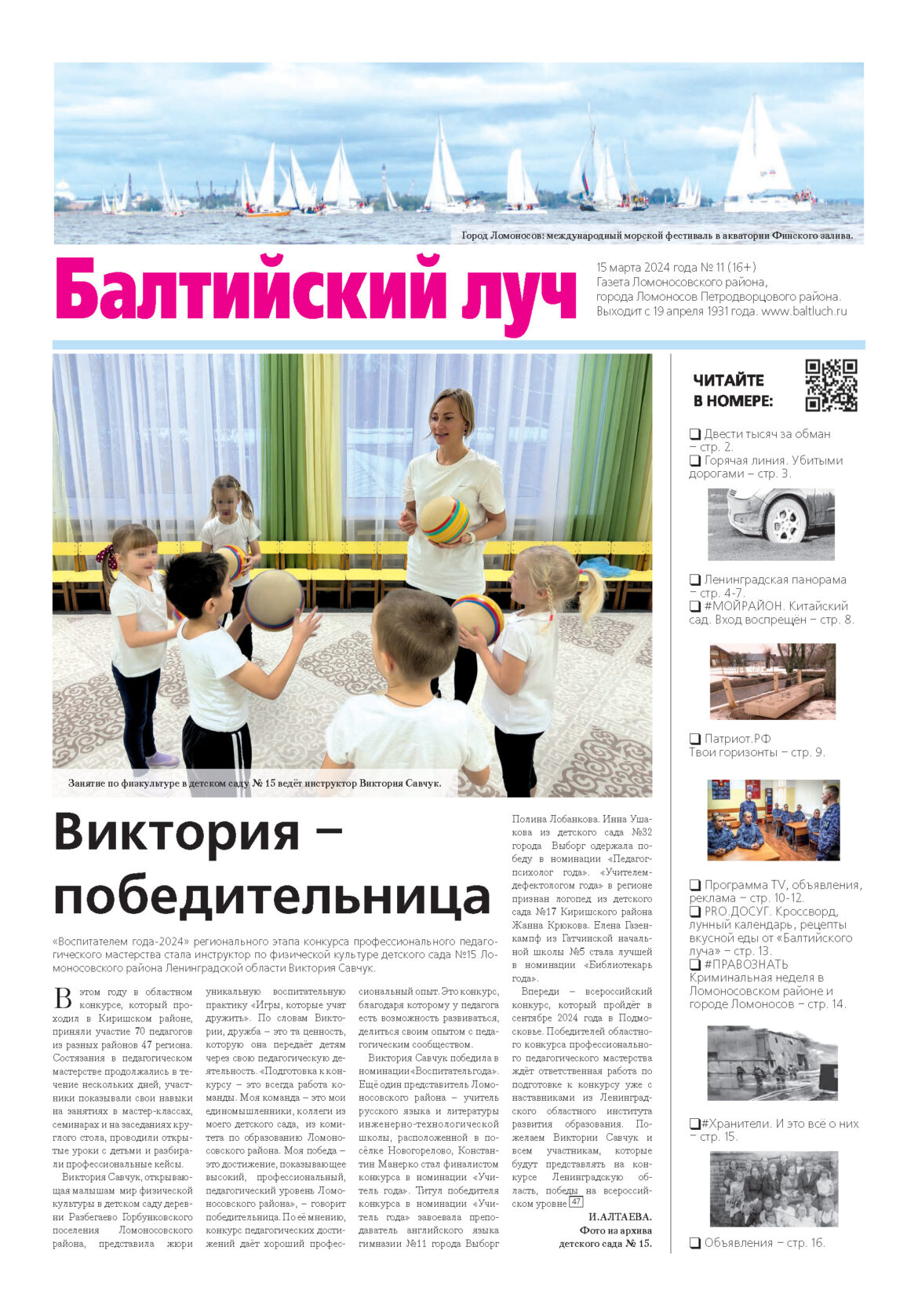 Главная #Мойрайон Новый номер газеты «Балтийский луч» (№11 от 15.03.2024 года) — уже в продаже и в ваших почтовых ящиках