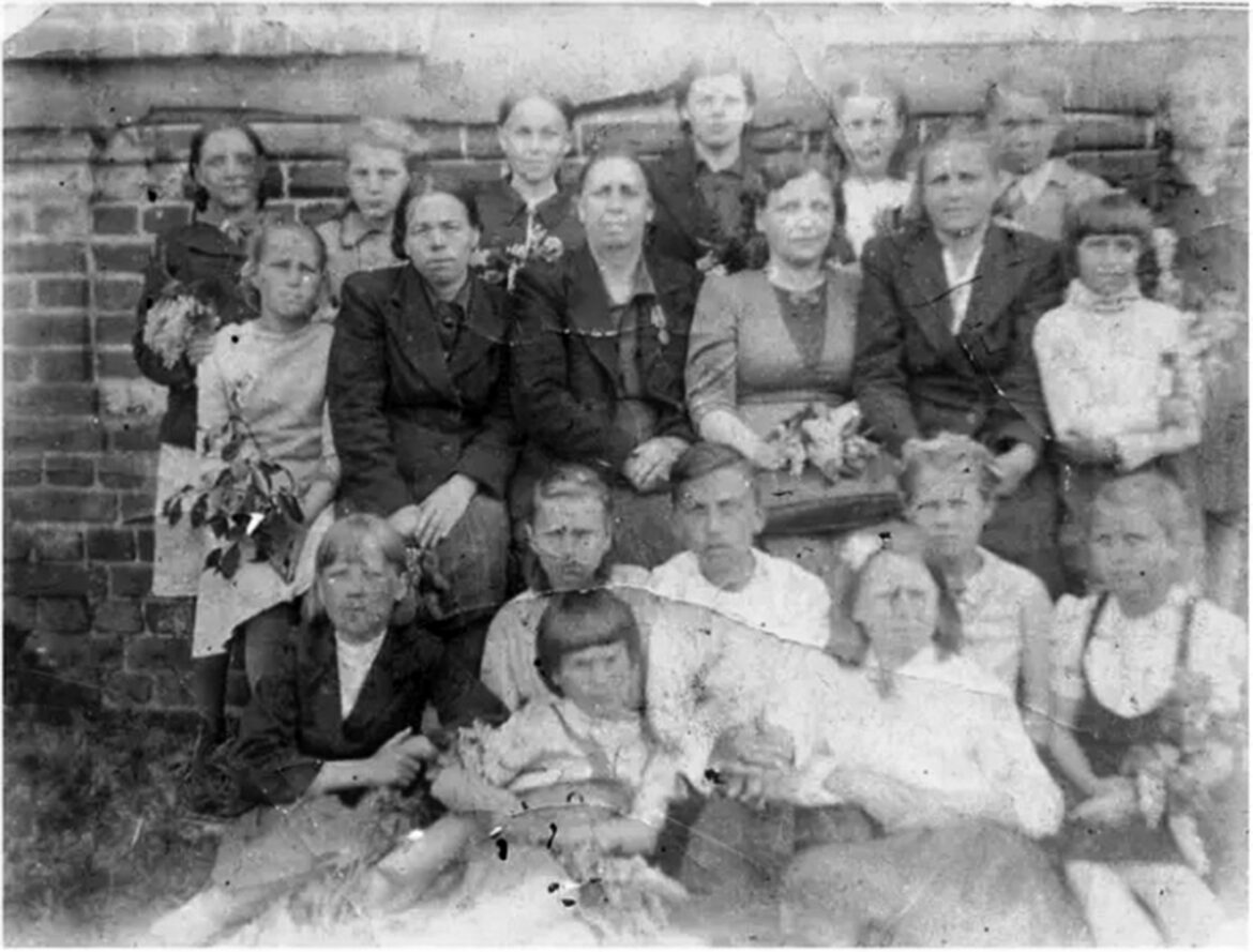 Фото сверху: Учителя и ученики школы в деревне Устье