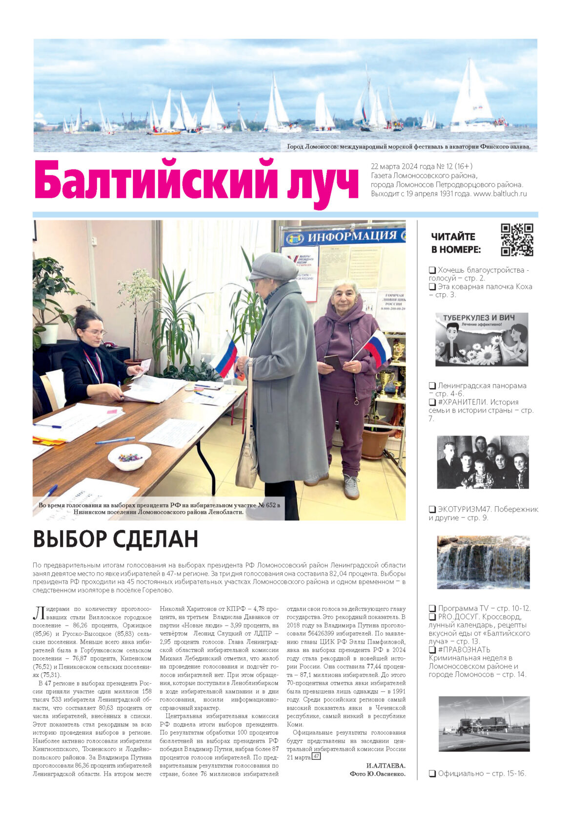 Газета «Балтийский луч» зарегистрирована в Управлении Федеральной службы по надзору в сфере связи, информационных технологий и массовых коммуникаций по Санкт-Петербургу и Ленинградской области. Свидетельство о регистрации средства массовой информации ПИ № ТУ 78-00616 от 21 мая 2010 года.