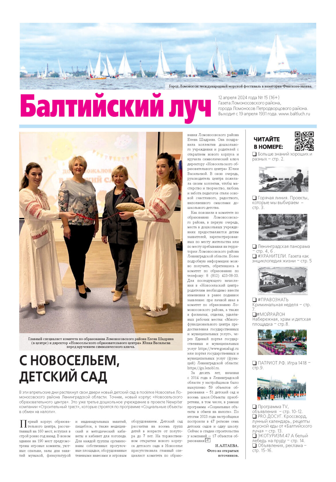 Главная #Мойрайон Новый номер газеты «Балтийский луч» (№15 от 12.04.2024 года) — уже в продаже и в ваших почтовых ящиках