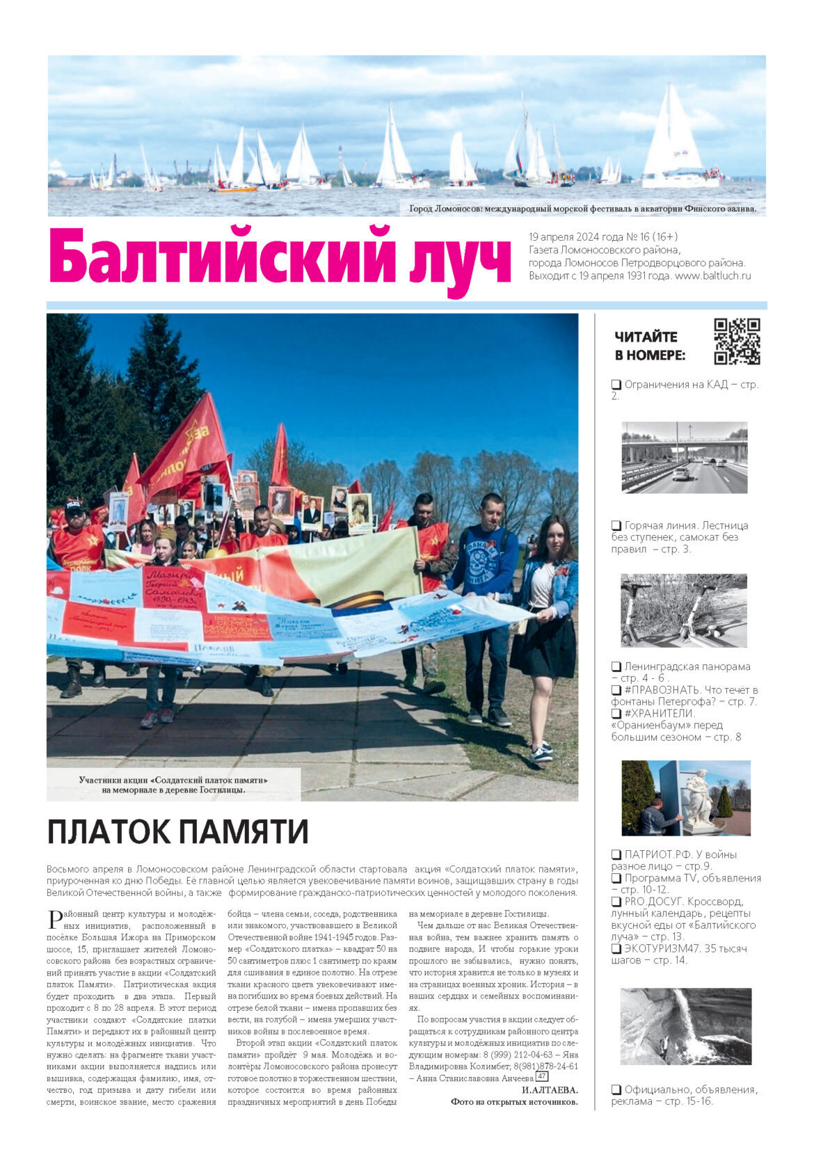 Газета «Балтийский луч» зарегистрирована в Управлении Федеральной службы по надзору в сфере связи, информационных технологий и массовых коммуникаций по Санкт-Петербургу и Ленинградской области. Свидетельство о регистрации средства массовой информации ПИ № ТУ 78-00616 от 21 мая 2010 года.