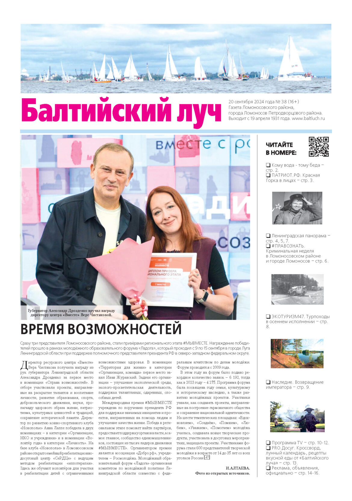 Главная Новости Новый номер газеты «Балтийский луч» (№38 от 20.09.2024 года) — уже в продаже и в ваших почтовых ящиках