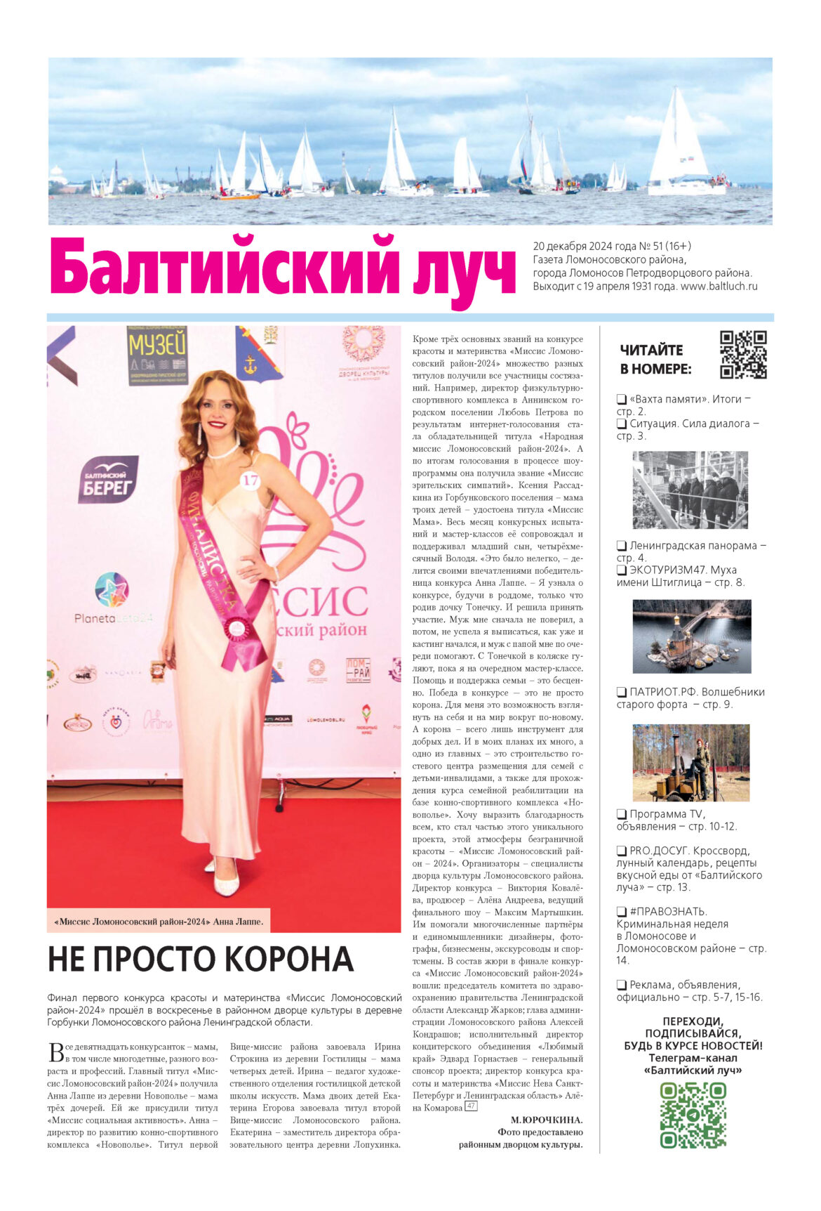 Главная Новости Новый номер газеты «Балтийский луч» (№51 от 20.12.2024 года) — уже в продаже и в ваших почтовых ящиках