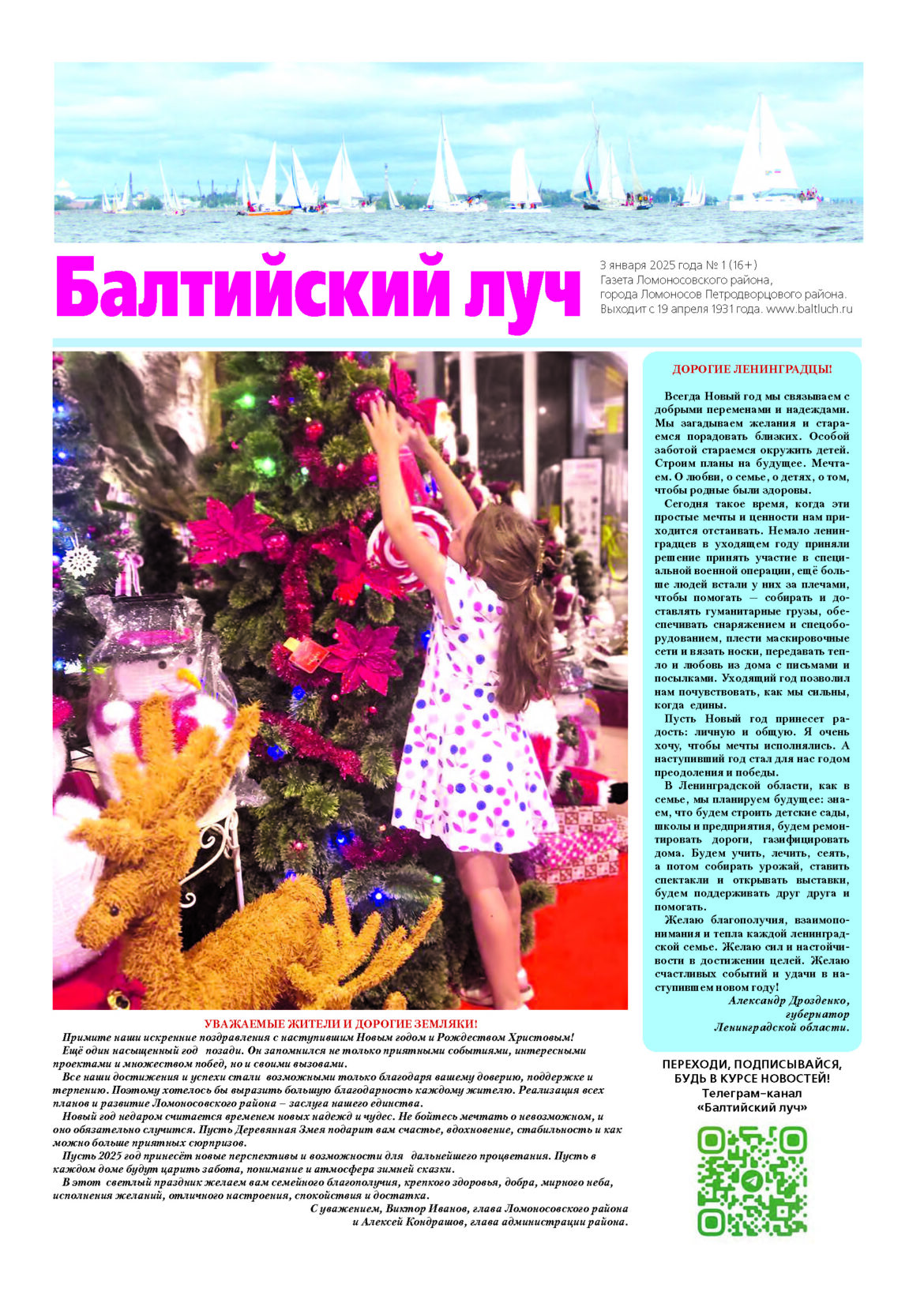 Газета «Балтийский луч» зарегистрирована в Управлении Федеральной службы по надзору в сфере связи, информационных технологий и массовых коммуникаций по Санкт-Петербургу и Ленинградской области. Свидетельство о регистрации средства массовой информации ПИ № ТУ 78-00616 от 21 мая 2010 года.