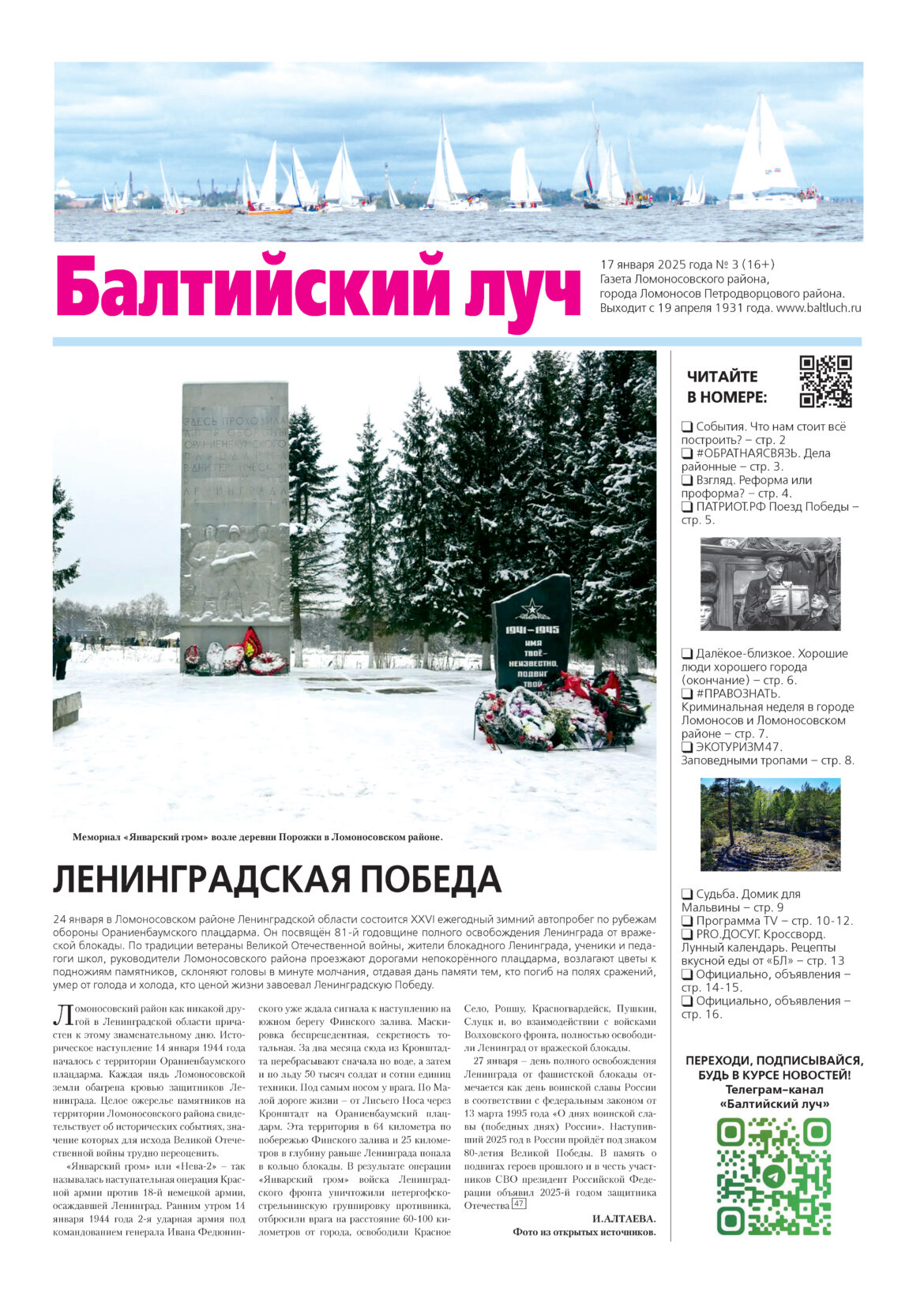Газета «Балтийский луч» зарегистрирована в Управлении Федеральной службы по надзору в сфере связи, информационных технологий и массовых коммуникаций по Санкт-Петербургу и Ленинградской области. Свидетельство о регистрации средства массовой информации ПИ № ТУ 78-00616 от 21 мая 2010 года.