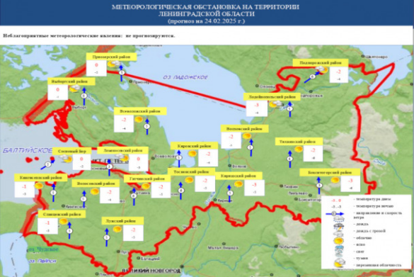 Главное управление МЧС России по Ленинградской области опубликовало прогноз погоды на понедельник, 24 февраля. Обстановка будет такой же, как и в предыдущие два дня.