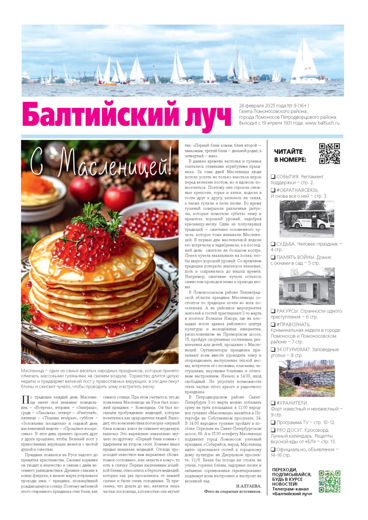 Главная #Мойрайон Новый номер газеты «Балтийский луч» (№7 от 14.02.2025 года) — уже в продаже и в ваших почтовых ящиках