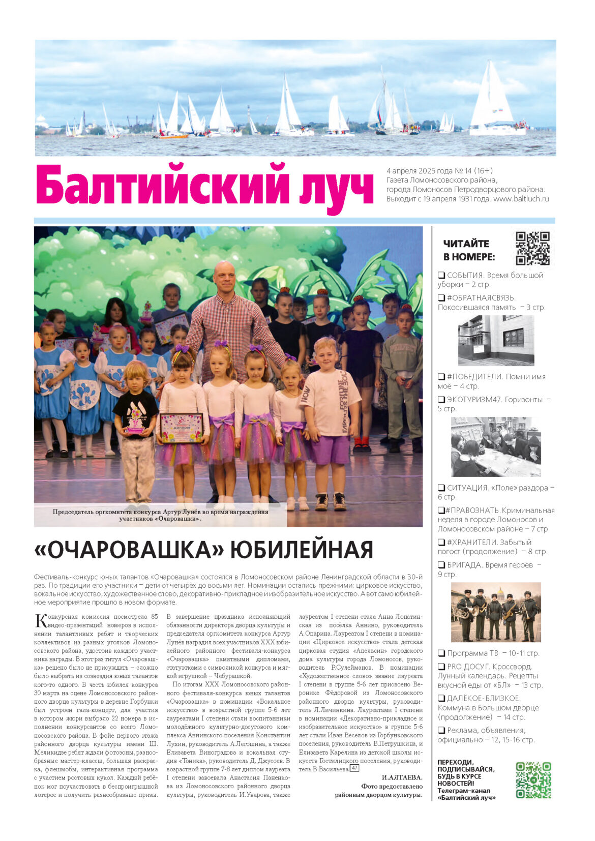 Главная Новости Новый номер газеты «Балтийский луч» (№14 от 4.04.2025 года) — уже в продаже и в ваших почтовых ящиках