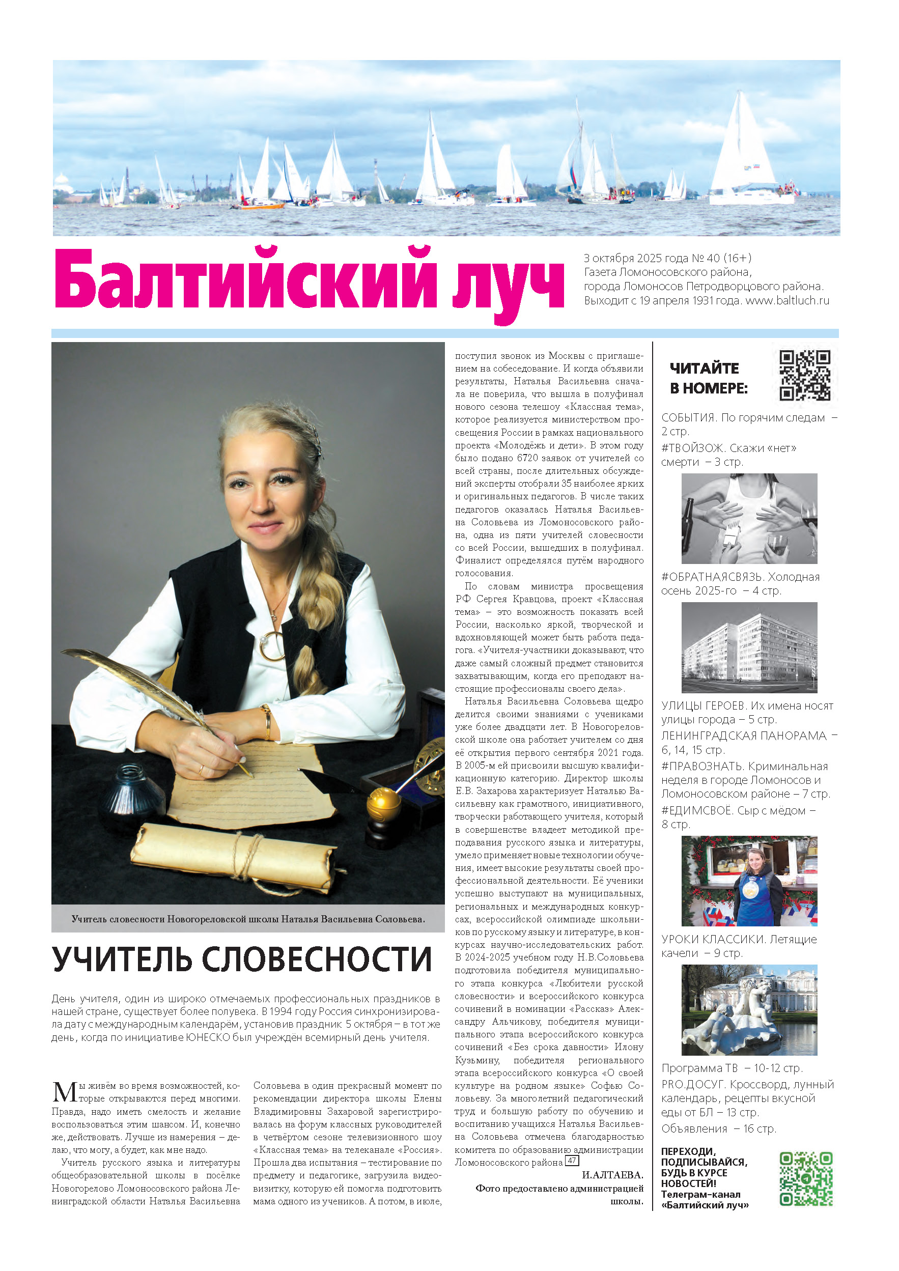 Газета «Балтийский луч» зарегистрирована в Управлении Федеральной службы по надзору в сфере связи, информационных технологий и массовых коммуникаций по Санкт-Петербургу и Ленинградской области. Свидетельство о регистрации средства массовой информации ПИ № ТУ 78-00616 от 21 мая 2010 года.