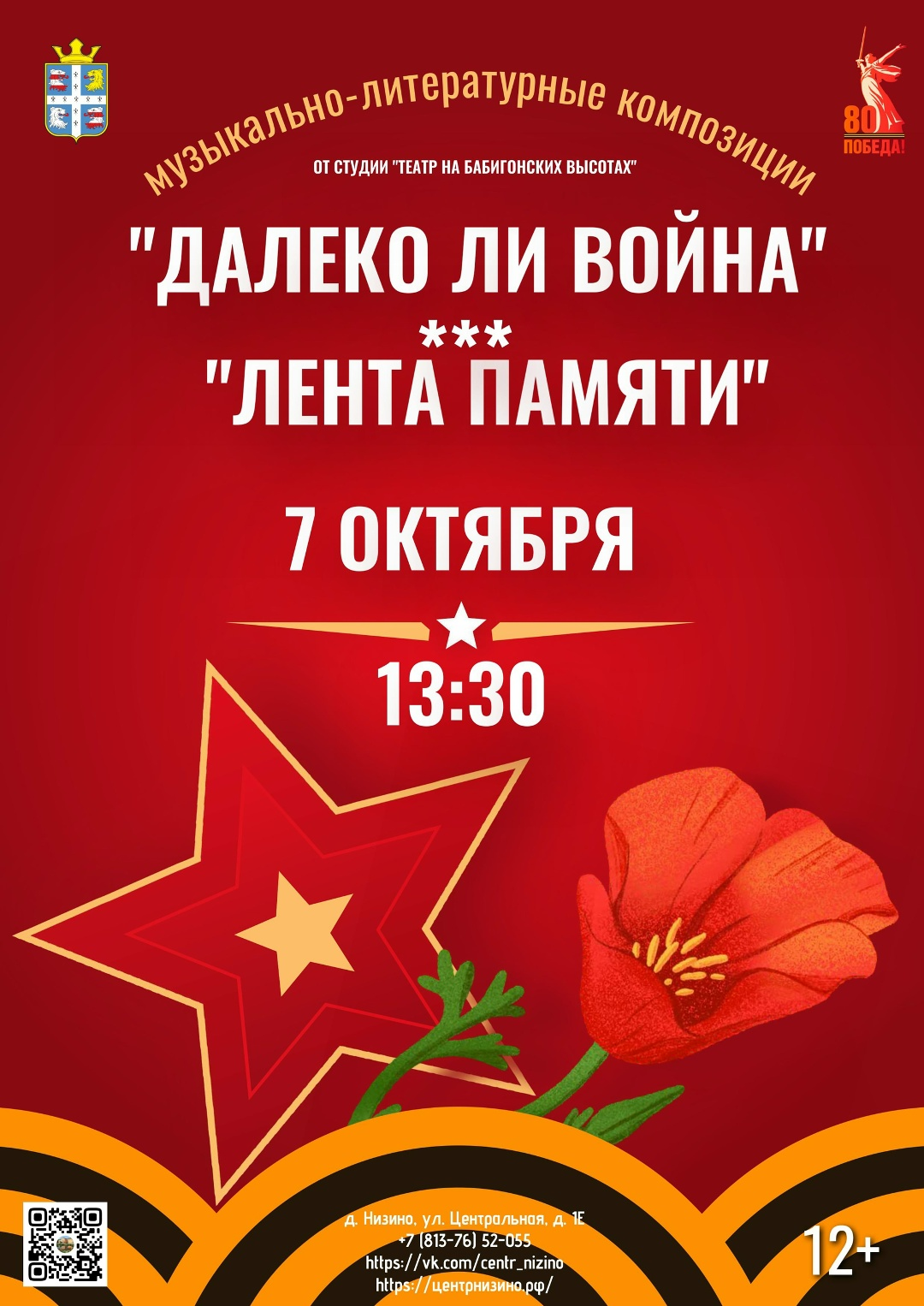 7 октября в 13:30 ТЕАТР НА БАБИГОНСКИХ ВЫСОТАХ приглашает на показ музыкально-литературных композиций «Далеко ли война» и «Лента памяти», основанных на документальных свидетельствах военного и послевоенного времени.