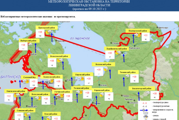 Как сообщает ГУ МЧС по Ленобласти 8 октября, переменная облачность установится в регионе в четверг, 9 октября. Местами, преимущественно на западе, пойдет дождь — небольшой или умеренный.