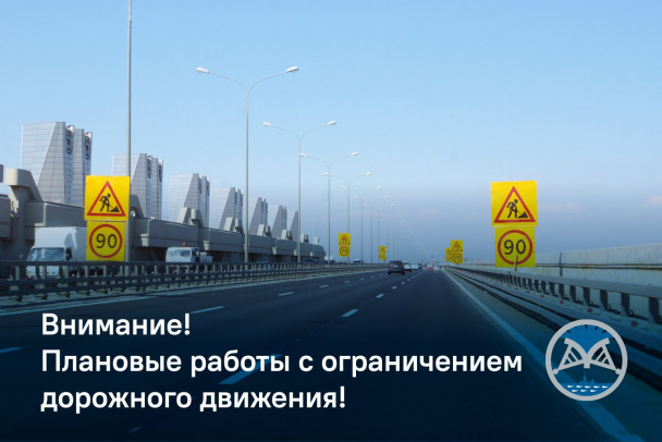 Движение на участке дороги ограничено из-за работ по очистке деформационного шва на мосту водопропускного сооружения В-4. Автомобилям разрешается проехать только по одной полосе.