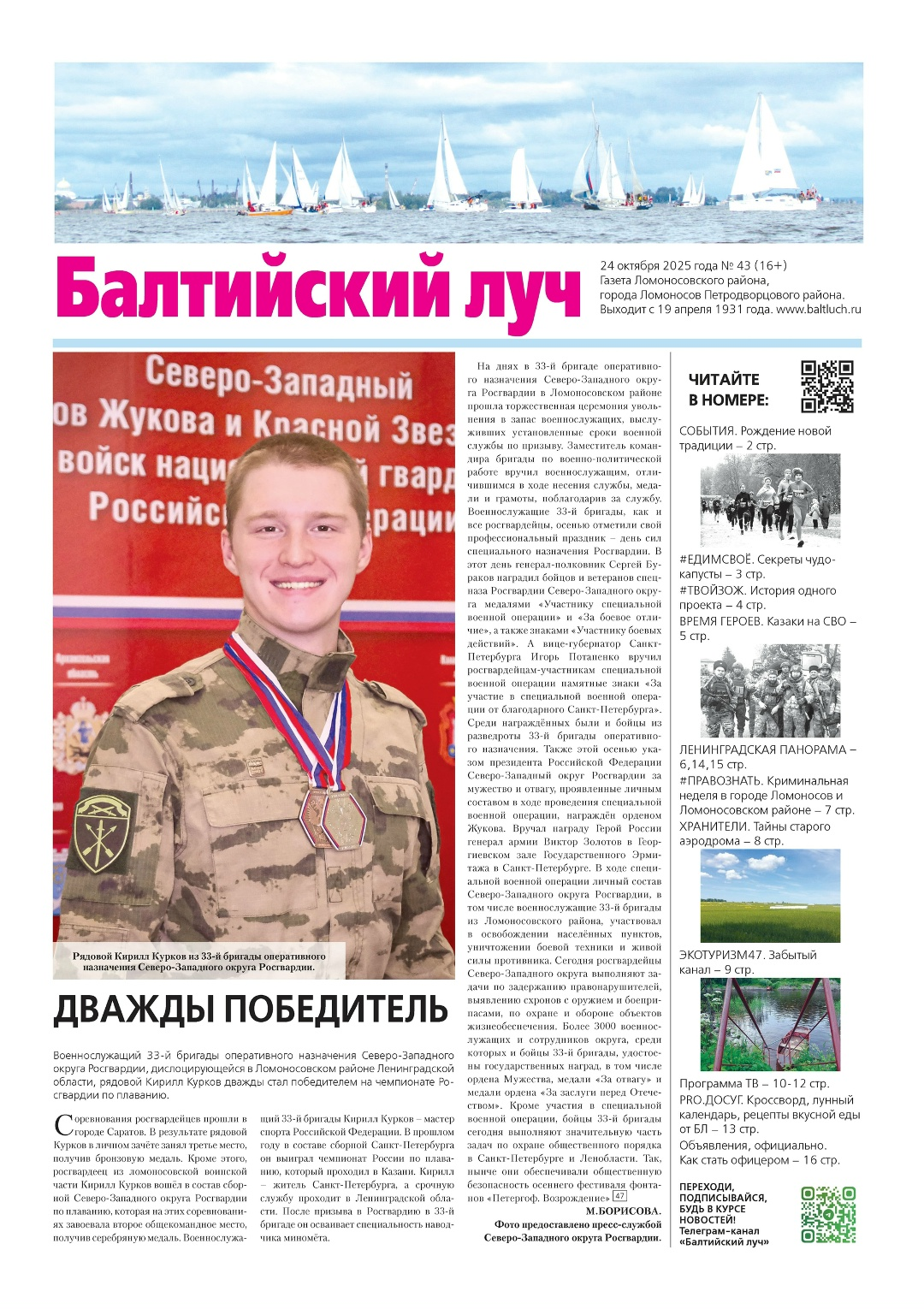 Главная #Мойрайон Новый номер газеты «Балтийский луч» (№43 от 24.10.2025 года) — уже в продаже и в ваших почтовых ящиках