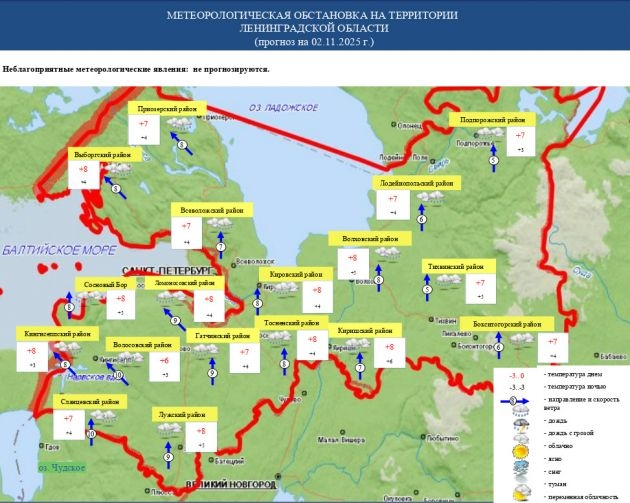 В Ленобласти завтра снова обещают дожди и туман. В воскресенье будет облачно, до +8.