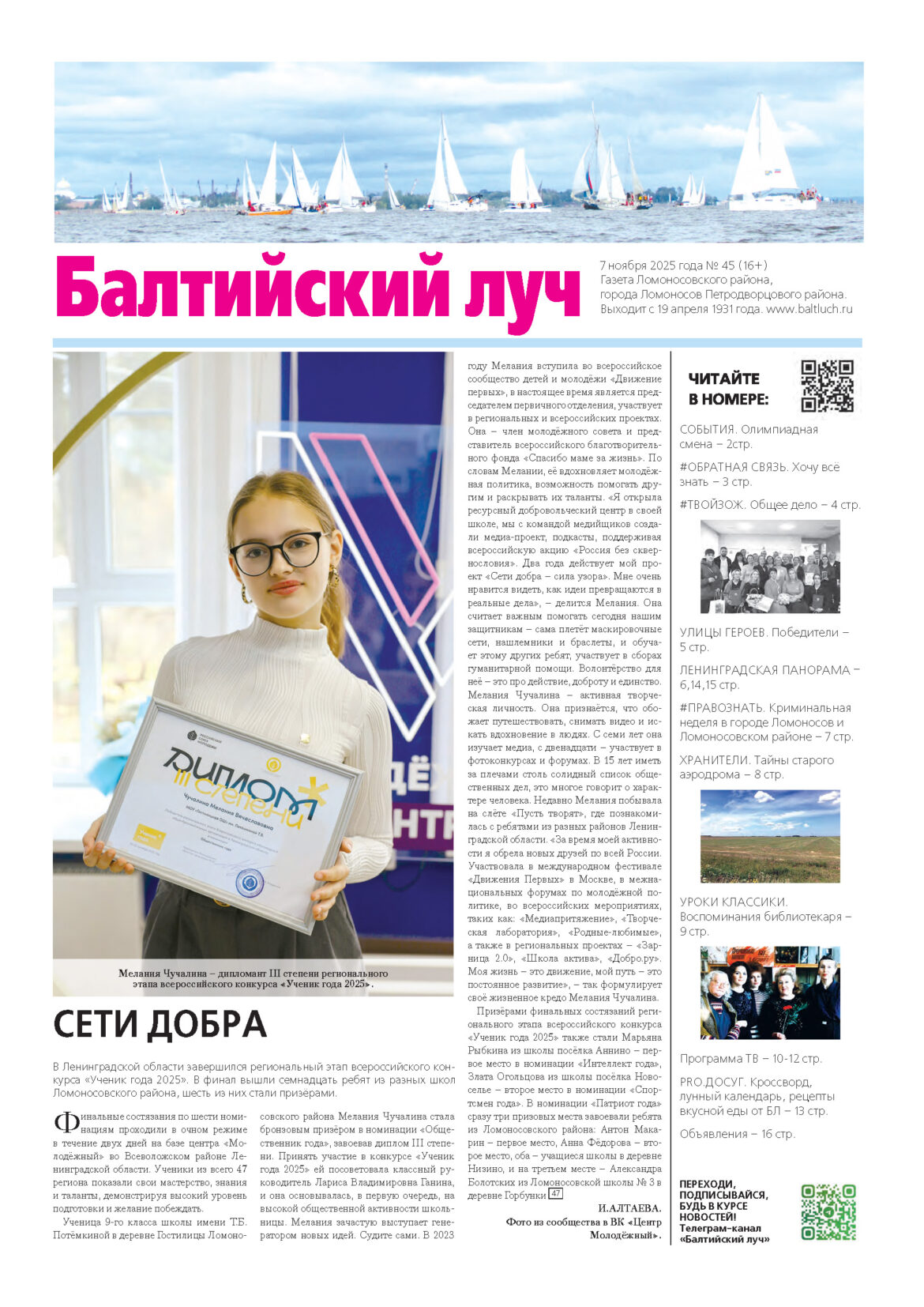 Газета «Балтийский луч» зарегистрирована в Управлении Федеральной службы по надзору в сфере связи, информационных технологий и массовых коммуникаций по Санкт-Петербургу и Ленинградской области. Свидетельство о регистрации средства массовой информации ПИ № ТУ 78-00616 от 21 мая 2010 года.