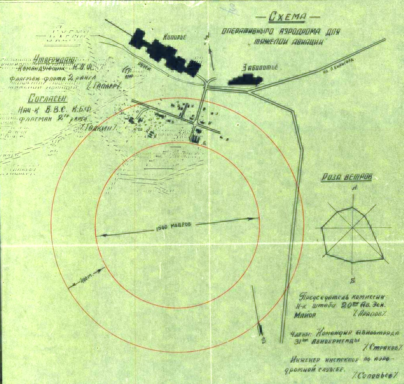 Фото вверху: Схема оперативного аэродрома для тяжелой авиации в Копорье