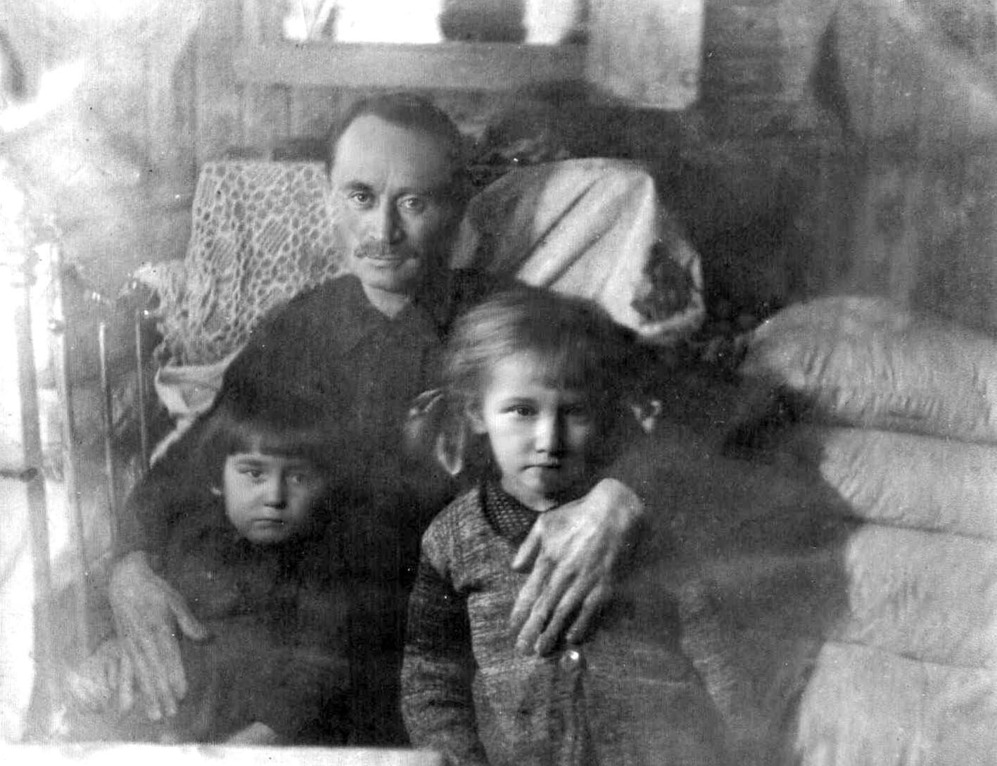 Фото сверху: Иван Фёдорович Казаков с внуками – детьми Антонины: Галиной и Владимиром в квартире в Красной Слободе, 1937 год.