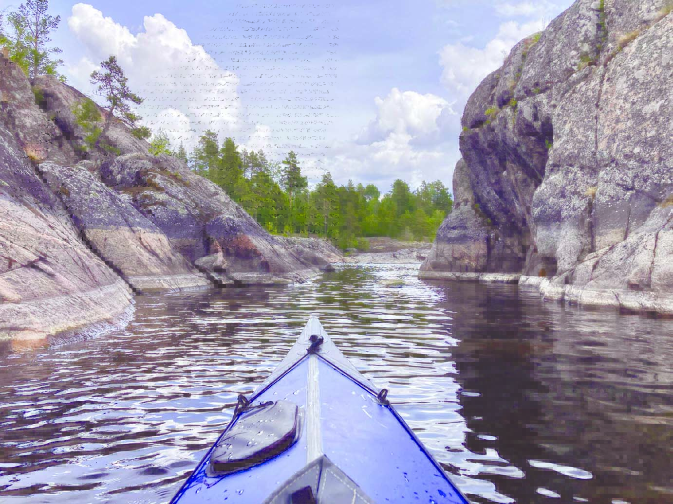 Совсем скоро я всё-таки вышла на берег Ладоги и заулыбалась от восторга, прищурившись от ярко-синей дали. Стала подыскивать место для стоянки. Мне очень хотелось поставить палатку где-нибудь прямо на скалах, чтобы видеть просторы озера перед собой, но в тот день со стороны открытой Ладоги дул порывистый ветер. Я расположилась на одной из скал, чтобы подумать и пообедать. «Не бойтесь, не бойтесь. Мы мирные люди», – подняв руки вверх, мимо меня прошествовал мужчина в очках, за которым гуськом следовали двое его сыновей. Они шли налегке, видимо, их палатки были неподалёку. От неожиданности я немного испугалась, проводив семейство взглядом. Как бы мне ни хотелось остаться ночевать прямо на скале с видом на открытую и кажущуюся бескрайней Ладогу, надо было идти дальше, чтобы спрятаться от ветра, который обещал к утру ещё больше усилиться, да и от посторонних глаз тоже. Я взвалила на спину рюкзак и снова зашагала по тропе. После обеда продолжила путь вдоль берега Ладоги и скоро повернула за выступающий мыс. Спустилась с покатых каменных скал, возвышающихся на несколько метров над водой, на плоский галечный пляж, который смотрит на запад, а не на ветреный восток. С пляжа открывался вид на узкий залив Лехмалахти, загромождённый островами, но зато мыс защищал от шквалов ветра. Решено: палатку поставлю здесь. К тому же это место было вдали от основной тропы, по которой ходят туристы, а значит, вероятность встречи с нежданными гостями меньше. Позже я слышала, как мимо проходили люди, но на территорию моего лагеря никто не заходил. Я умылась и переоделась, вода в Ладоге была ледяная. Я специально взяла с собой не лёгкую палатку, как обычно, а небольшую, которая для одного человека очень удобна и уютна. Внутри разложила свои вещи, легла на коврик и достала книгу. В ногах у меня шумела, набегая на красноватую гальку, Ладога, вдалеке виднелись зелёные острова, а над головой шуршали колкими кронами сосны. Красота. Потом приготовила ужин и гуляла по берегу, где пляж снова превращается в монолитные каменные бараньи лбы, позволяя ветру на мысу беспечно трепать мои волосы. Небо было чистое и ровное, краски заката не растекались по нему акварелью, а скупо рассредоточились тонкой полосой вдоль горизонта. Я смотрела на погружавшееся в темноту противоположного берега солнце и с облегчением провожала этот день и свои страхи, которые меня всё-таки преследовали в этом одиночном походе. Дождалась заката, который случился примерно в четверть десятого. Мне казалось нечестным терять даже минуту этого прекрасного ясного дня на берегу волшебной Ладоги, но, проводив солнце, я тут же залезла в спальник и уснула, едва сомкнув глаза.