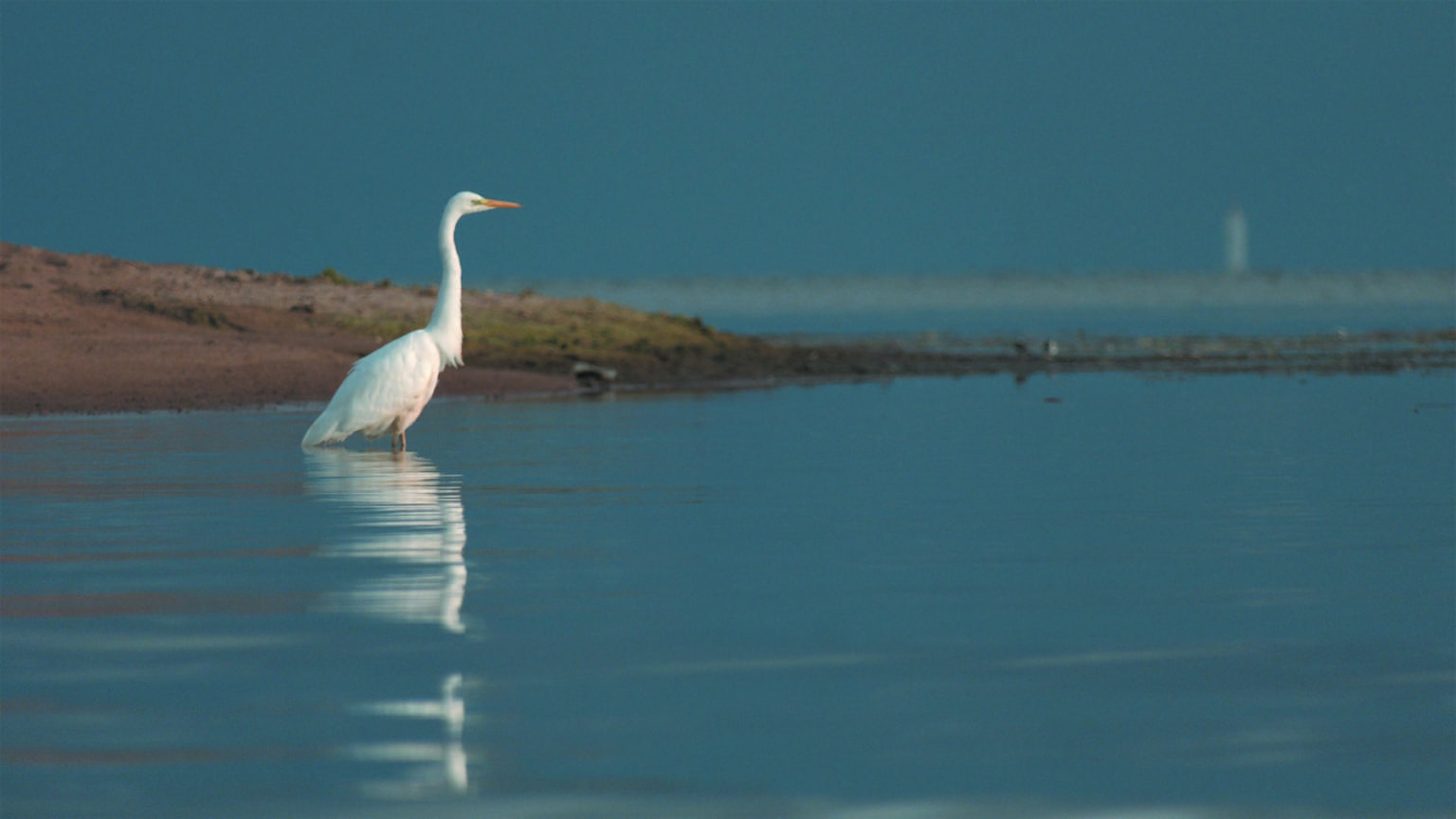 Второй вид живущих у нас цапель — большая белая. Как мы уже догадываемся, это не альбинос серой цапли, а самостоятельный вид. Большие белые цапли — жители южных широт, и их появление у нас связано с потеплением климата. Впервые этот вид появился в наших краях чуть больше 10 лет назад, и спустя несколько лет на Кургальском полуострове учёные обнаружили их первое гнездо — в нём птицы успешно вывели своих птенцов. В настоящее время большая белая цапля активно расселяется по нашей области и успешно размножается. Эти птицы строят гнёзда в цапельниках своих серых собратьев и мирно живут рядом с ними.