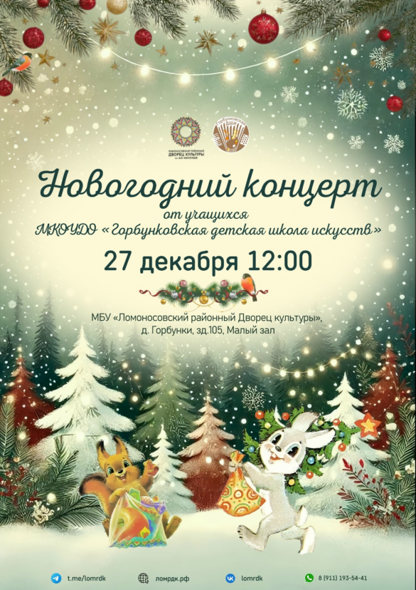 Вот и подходит к концу 2025 год, и в его уходящие дни МКОУДО «Горбунковская ДШИ» приглашает всех посетить музыкальный концерт, наполненный симфонией волшебства и уюта. Юные воспитанники исполнят известные новогодние и рождественские мотивы классиков мирового музыкального искусства