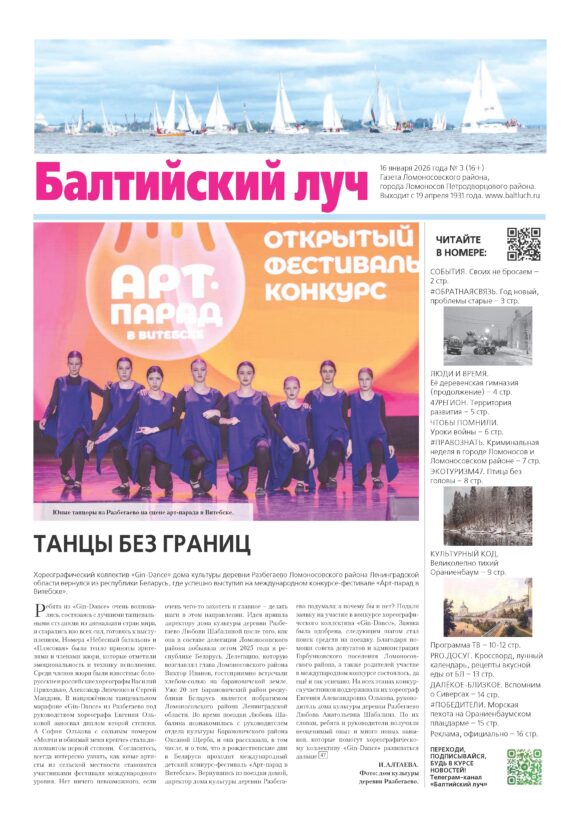 Главная Новости Новый номер газеты «Балтийский луч» (№3 от 16.01.2025 года) — уже в продаже и в ваших почтовых ящиках
