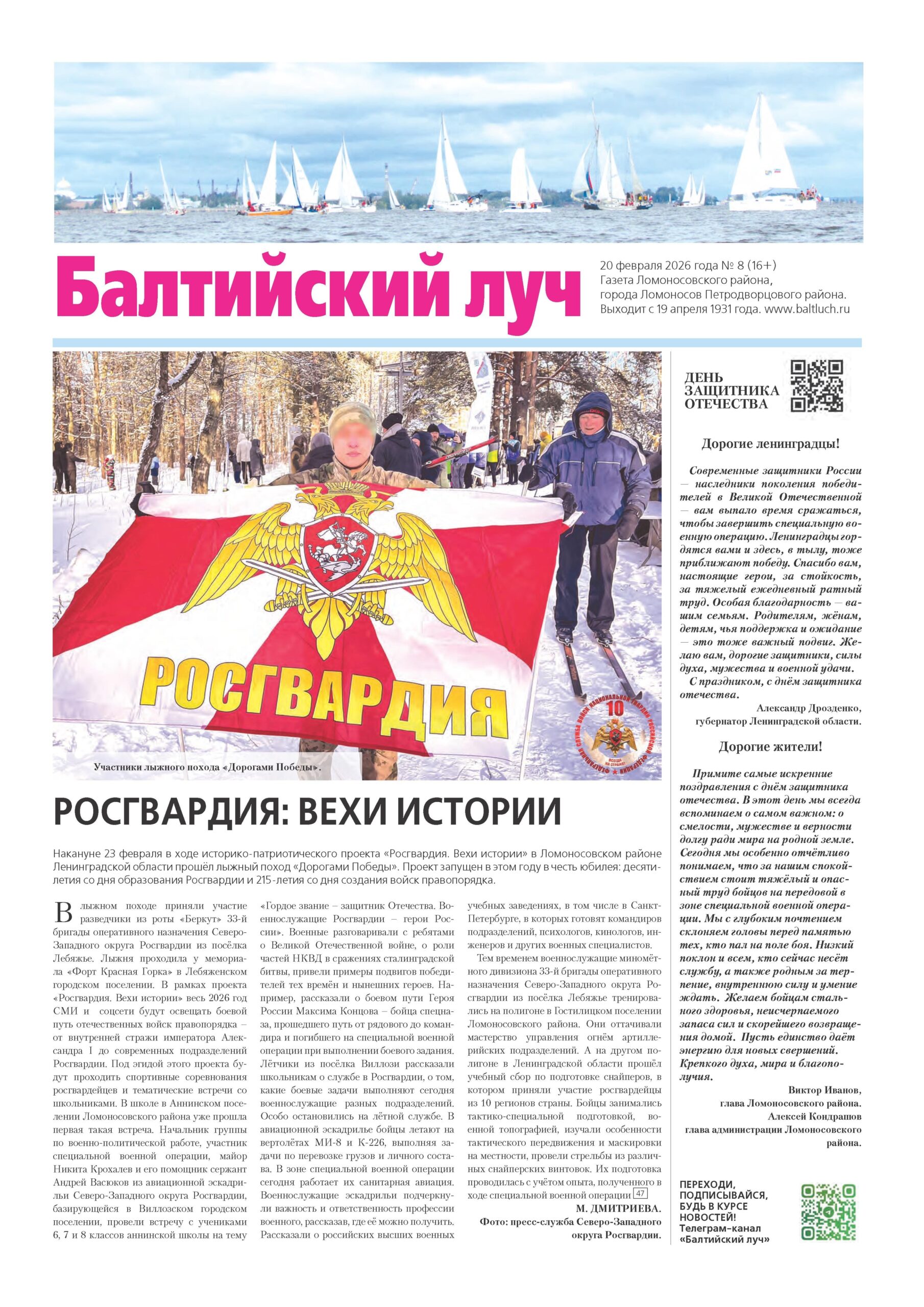 Главная Публикации Новый номер газеты «Балтийский луч» (№8 от 20.02.2026 года) — уже в продаже и в ваших почтовых ящиках